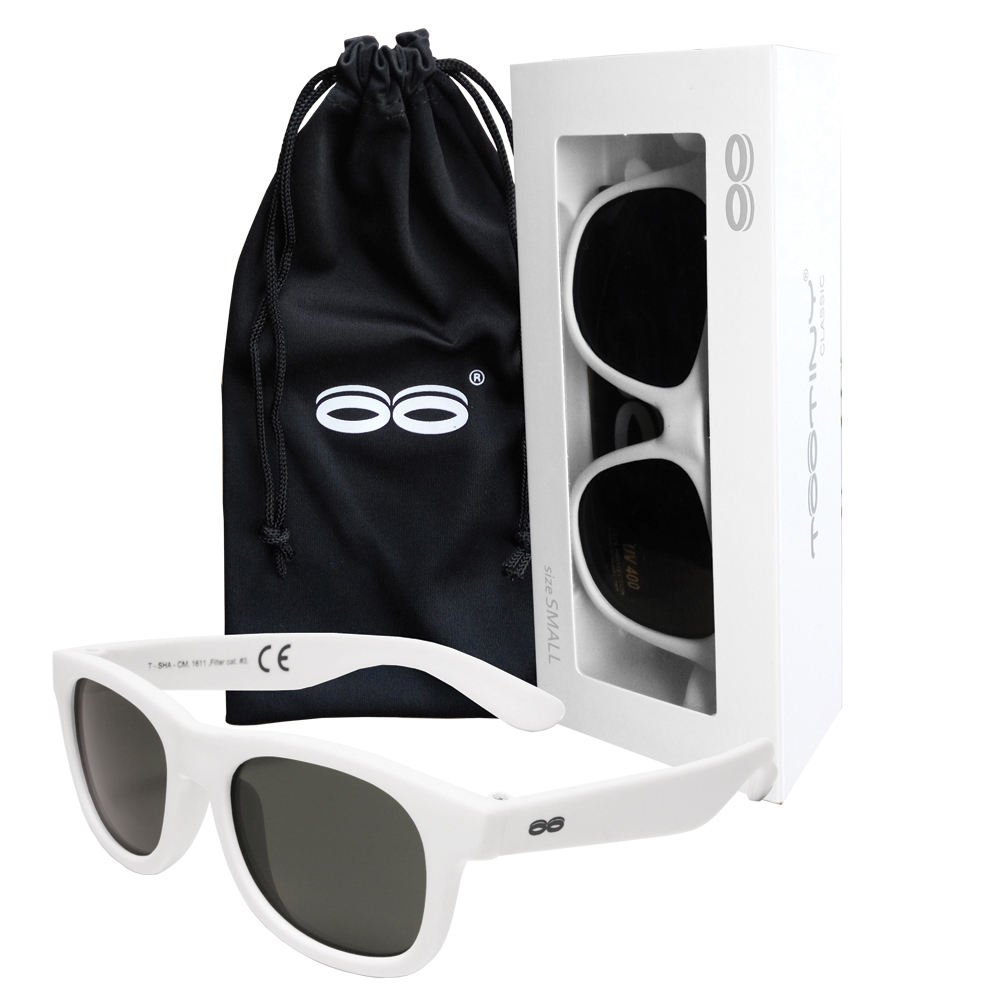 Tootiny Classic solbriller er holdbare, trygge og stilfulle solbriller til barn fra 3 år, i fargen hvit.