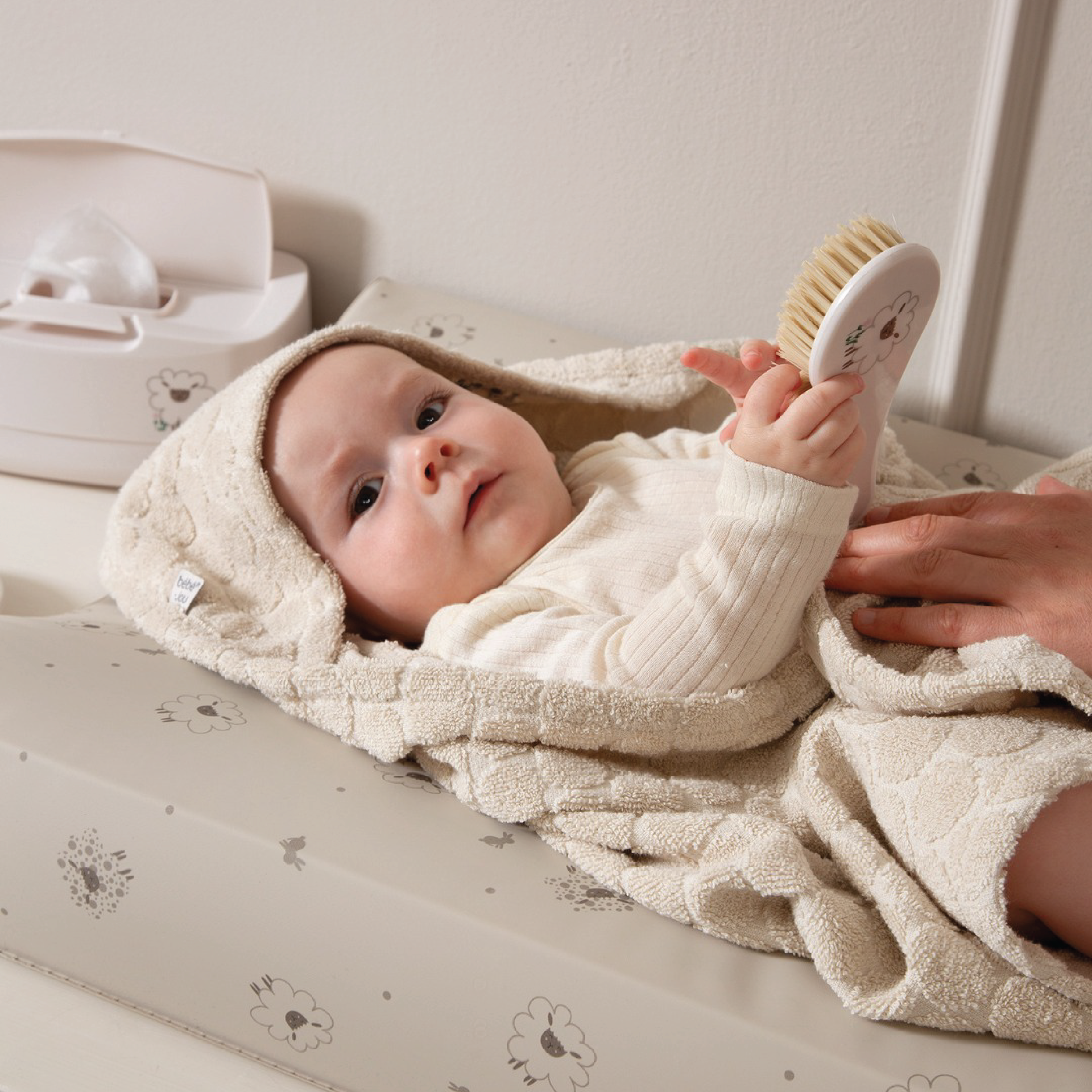 - Kam og børste til baby for skånsom hårpleie.