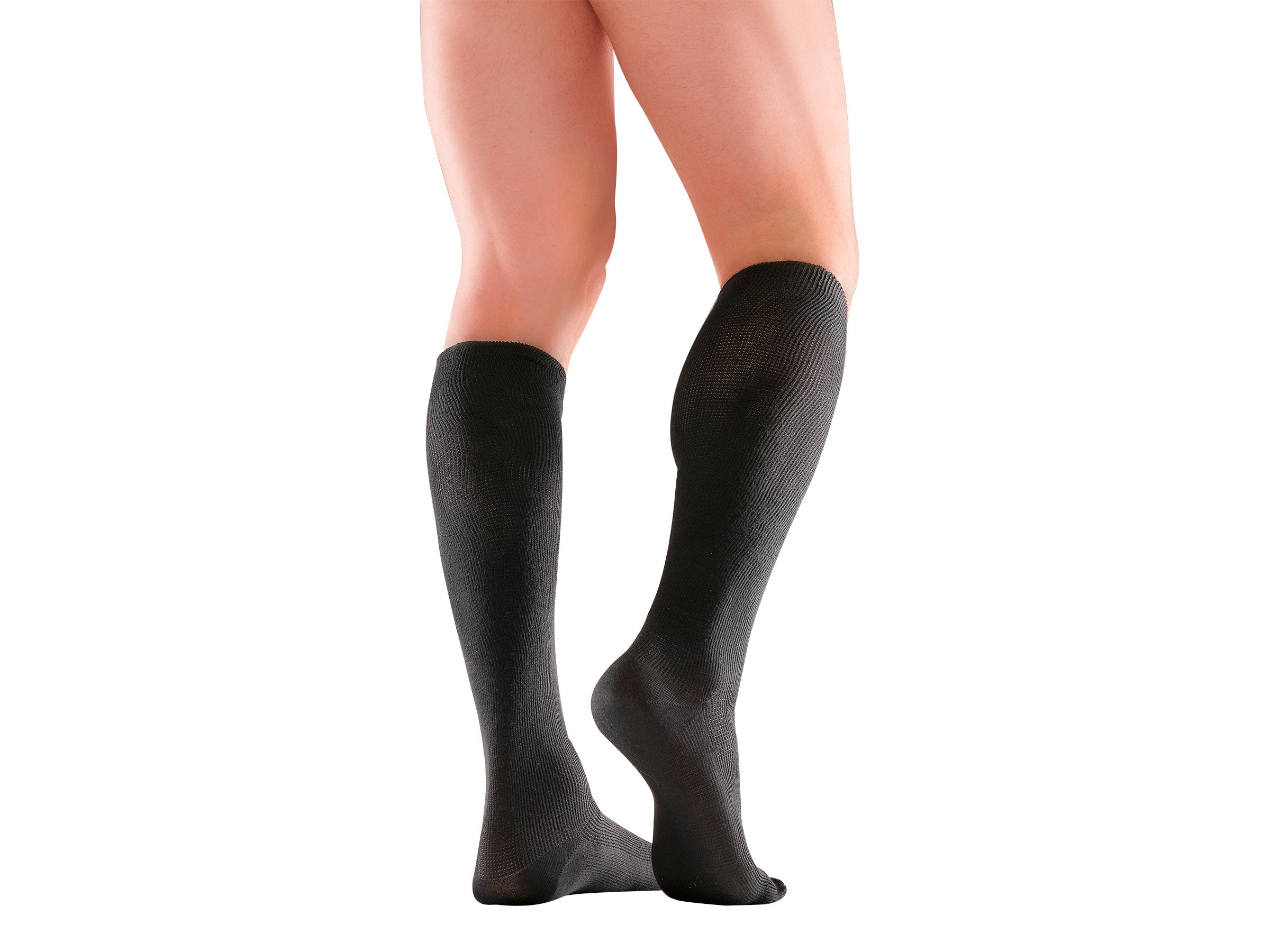 Mabs Work knestrømpe str. Medium er en kompresjonsstrømpe som er perfekt å bruke på jobben, sort, 1 par.