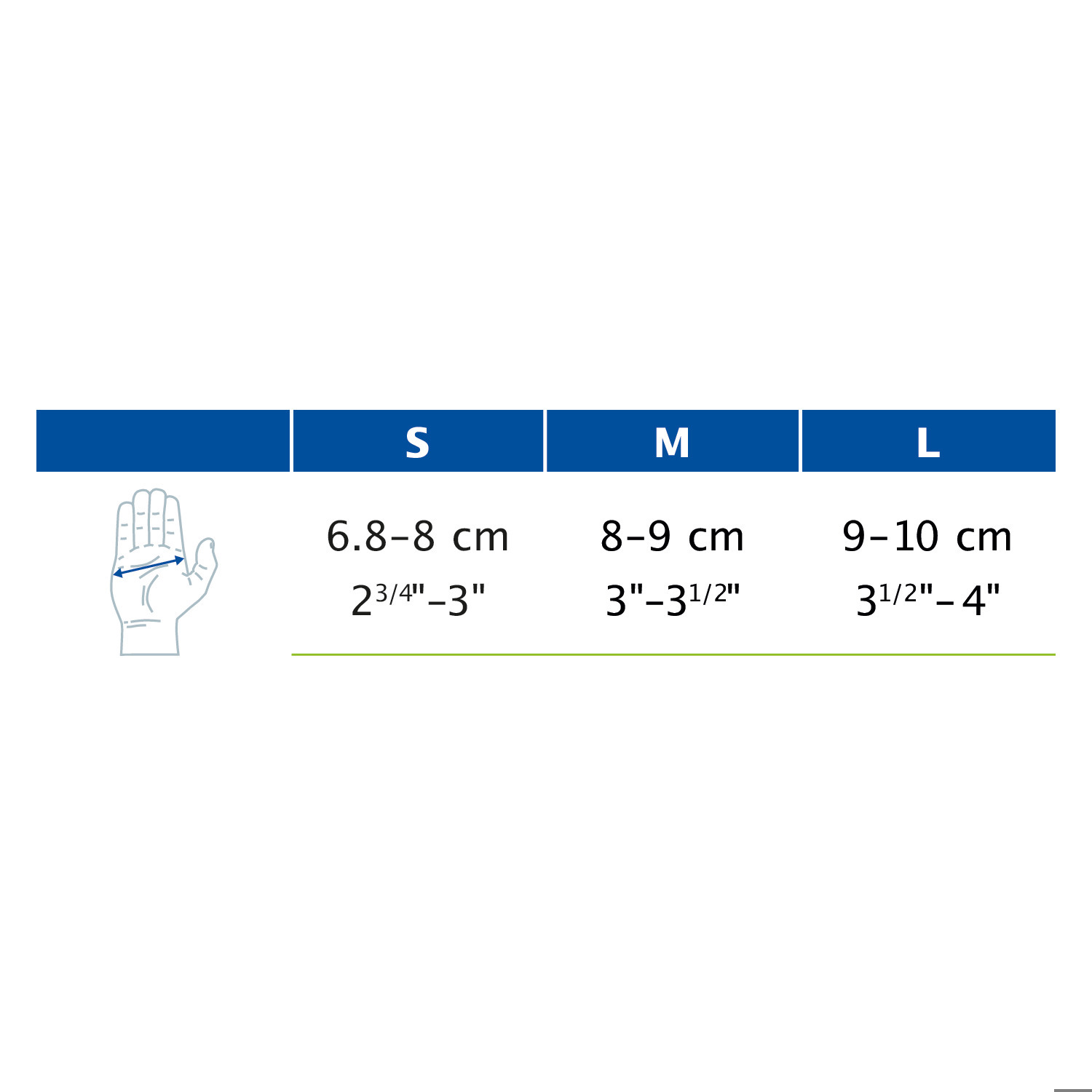 S: 6,8-8 cm; M: 8-9 cm; L: 9-10 cm.