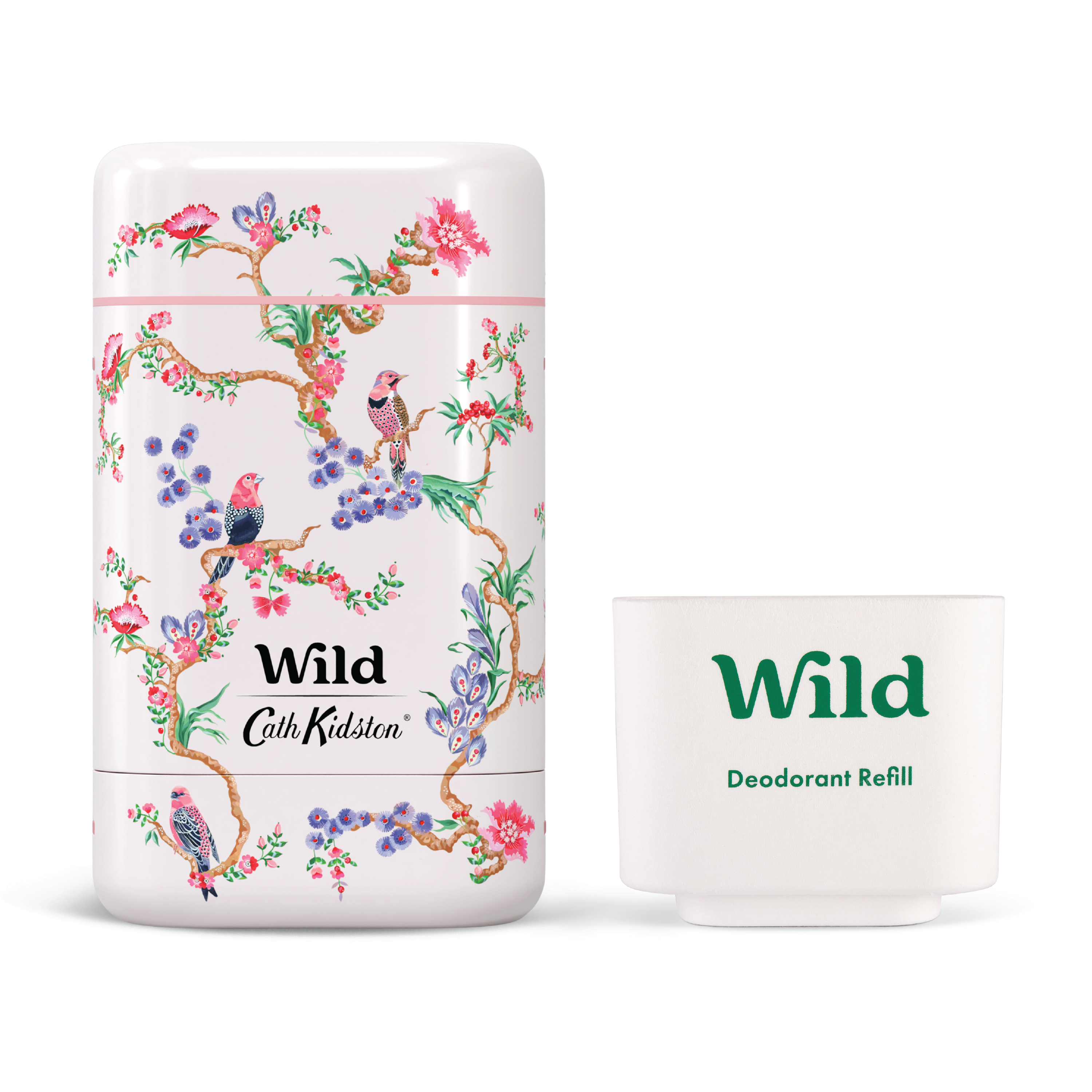 Wild Deo Stick Birds Berries Cherry Blossom Startpakke er en naturlig deodorant i en smart løsning der du beholder etuiet og fyller på med en 100 % komposterbar og plastfri refill når den er tom. Deodoranten inneholder effektive ingredienser som gir opptil 24 timers beskyttelse mot vond lukt. Deodoranten hemmer ikke svetteproduksjonen, men bidrar til å holde armhulene friske gjennom dagen.