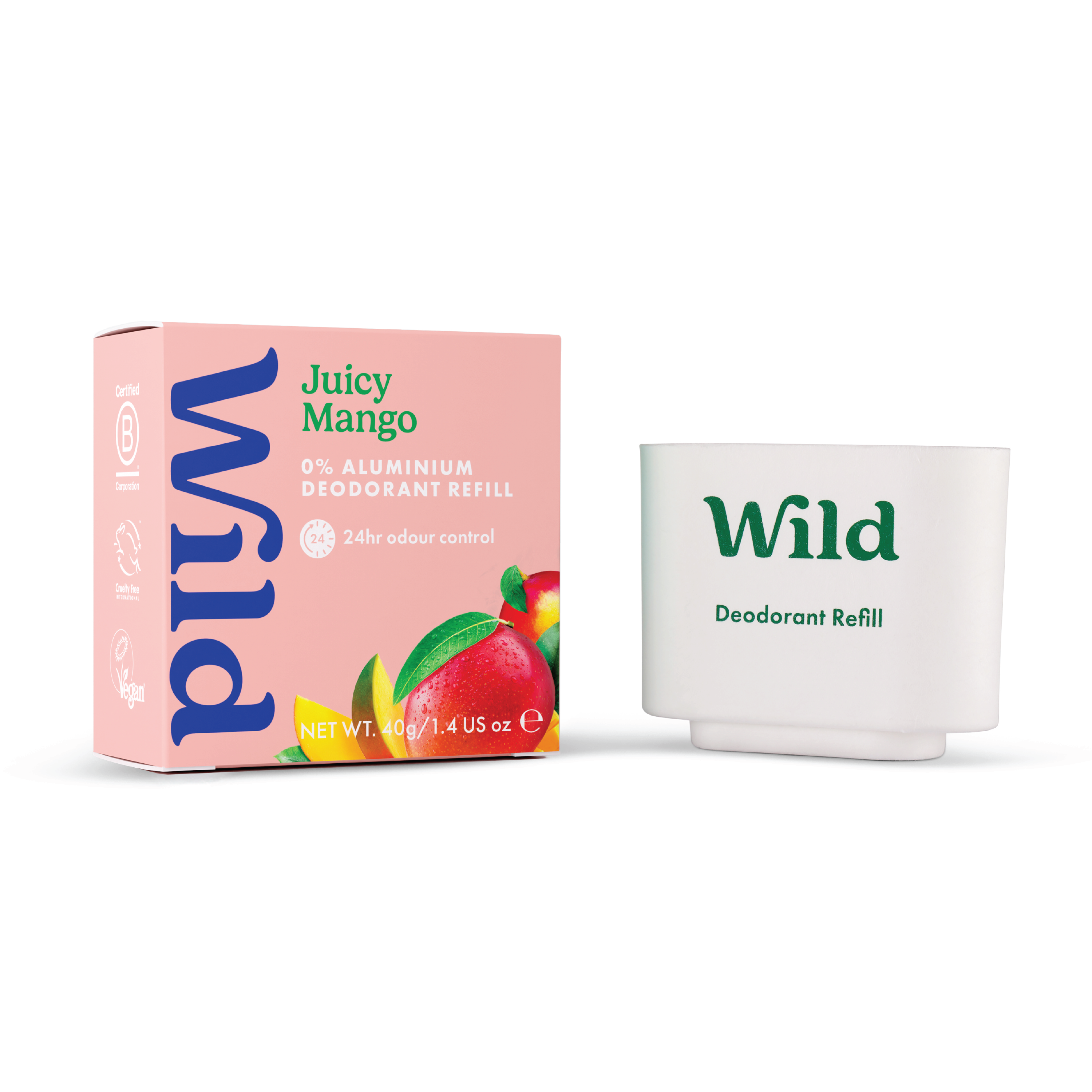 Wild Deo Stick Juicy Mango Refill er en naturlig deodorant-refill som har en fruktig og søt duft av solmoden mango, full av tropiske noter.