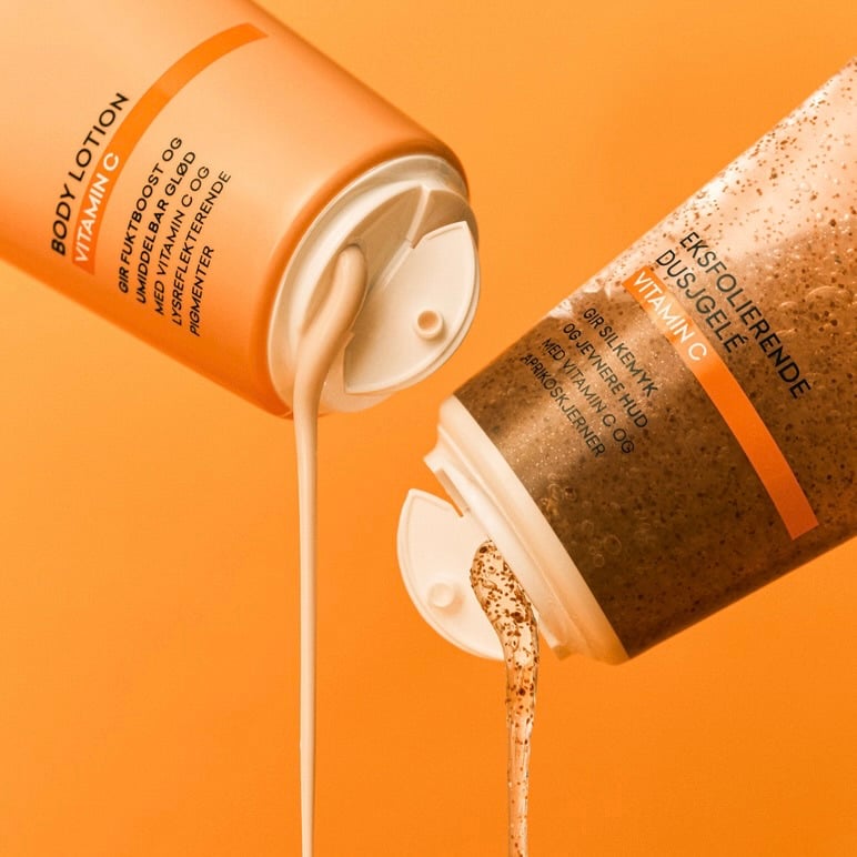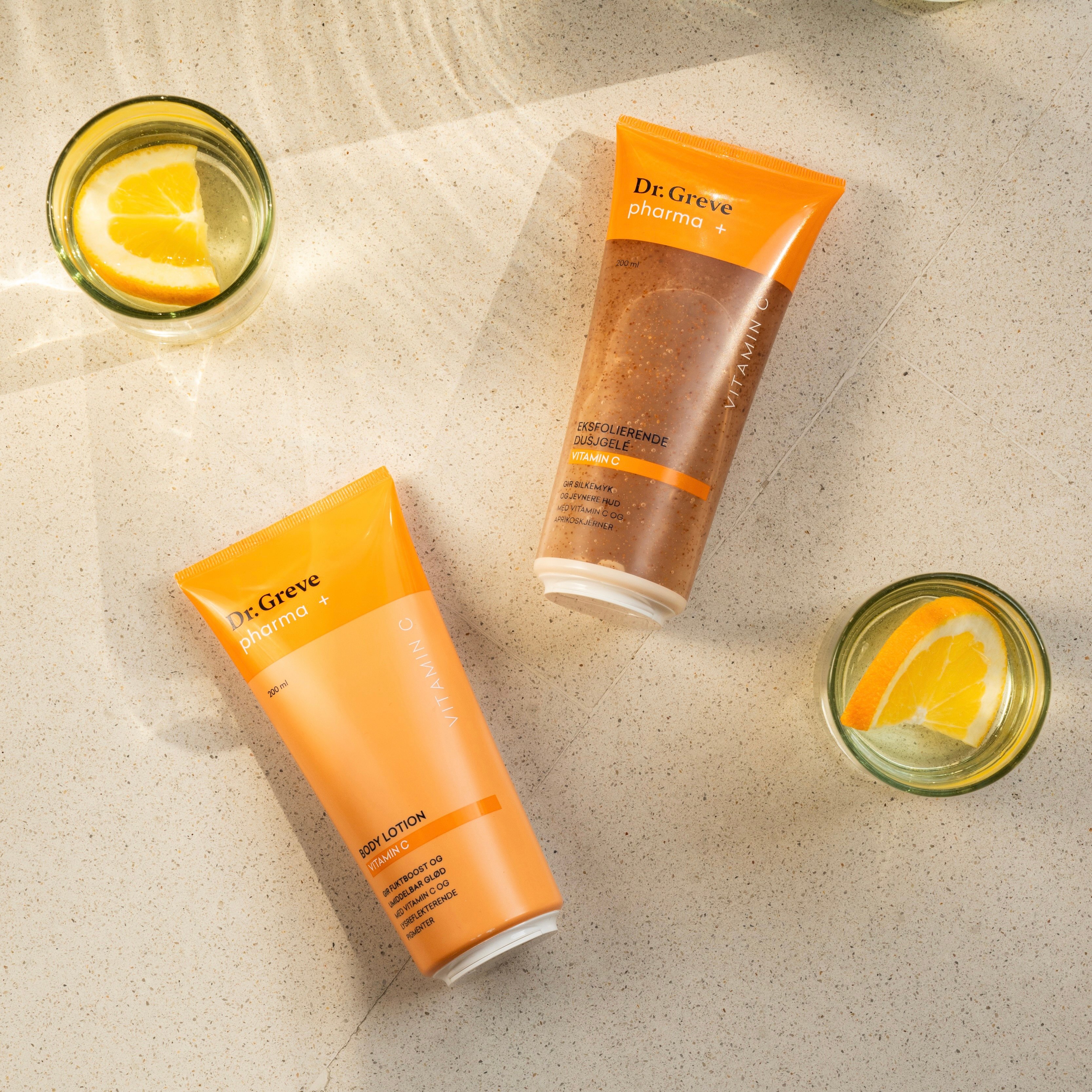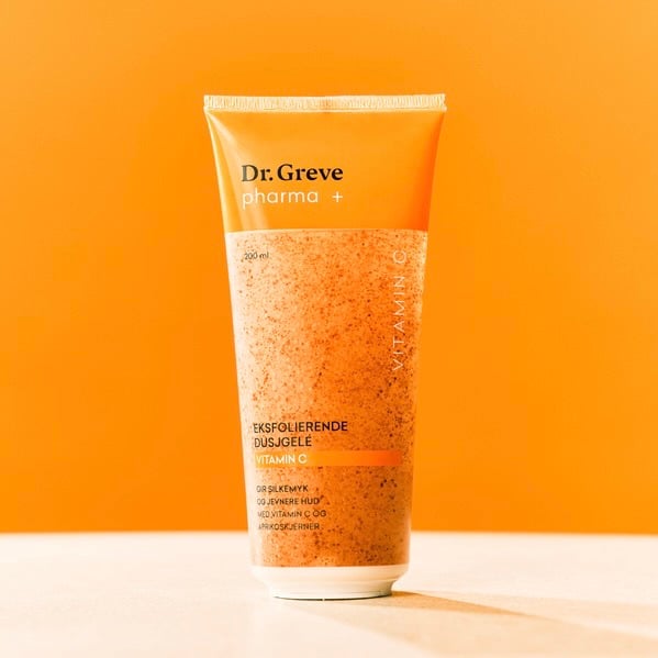 Dr. Greve Pharma Vitamin C Eksfolierende Dusjgele er en mild eksfolierende dusjgele som bidrar til å mykgjøre huden og gi glød.