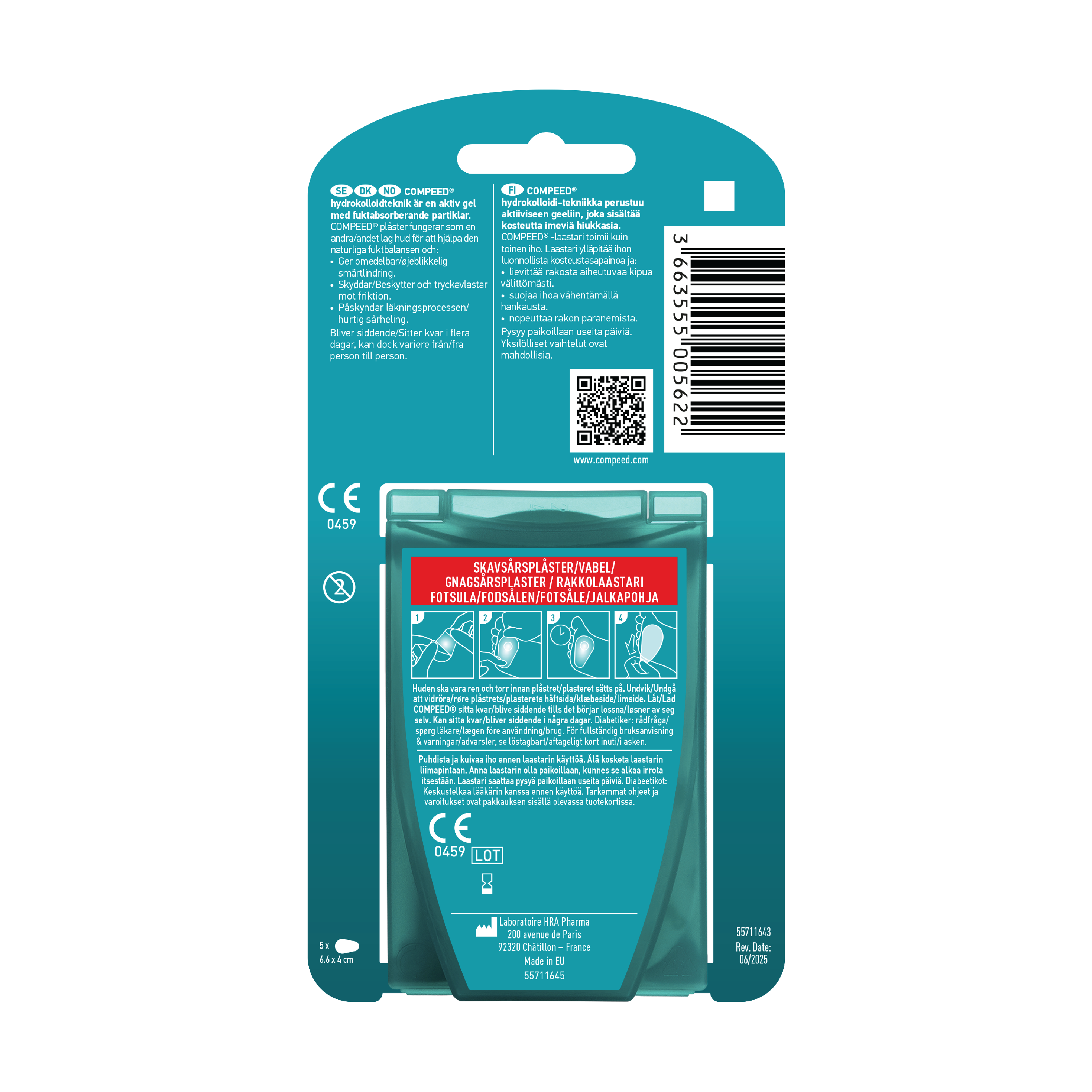 Compeed Gnagsårplaster Fotsåle fungerer som et ekstra hudlag som avlaster, reduserer smerten og beskytter mot vann, smuss og bakterier. Gnagsårplasteret er effektivt i alle faser av blemmer, men jo tidligere du påfører plasteret, desto raskere leges blemmen. Plasteret er formtilpasset med selvklebende avsmalnende kanter som følger med bevegelsene dine når du beveger deg, slik at gnagsåret ikke trenger å ødelegge dagen. Compeed gnagsårplaster skaper et fuktig sårmiljø som gir best mulig forutsetning for leging av gnagsåret, slik at det får en raskere og naturlig helbredelse. Plasteret er spesielt egnet for personer som trener mye, og er perfekt for alle blemmer under foten.