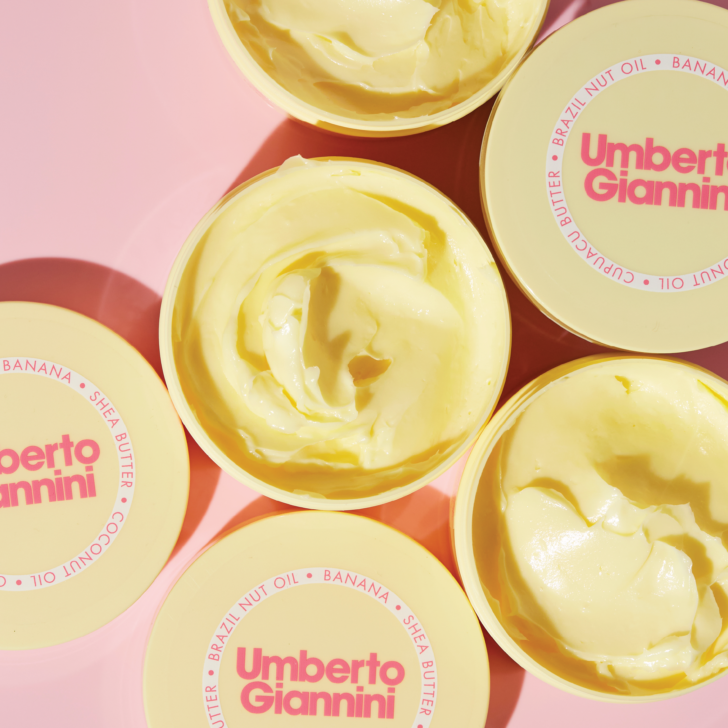 Umberto Giannini Banana Butter Leave-In Conditioner bidrar til å reparere og styrke tørt hår ved hjelp av pleiende sheasmør og kokonøttsolje som tilfører rikelig med næring og fuktighet. Leave-in balsamen bidrar til et mykere hår med mindre frizz. Med en mild duft av banan og ananas.