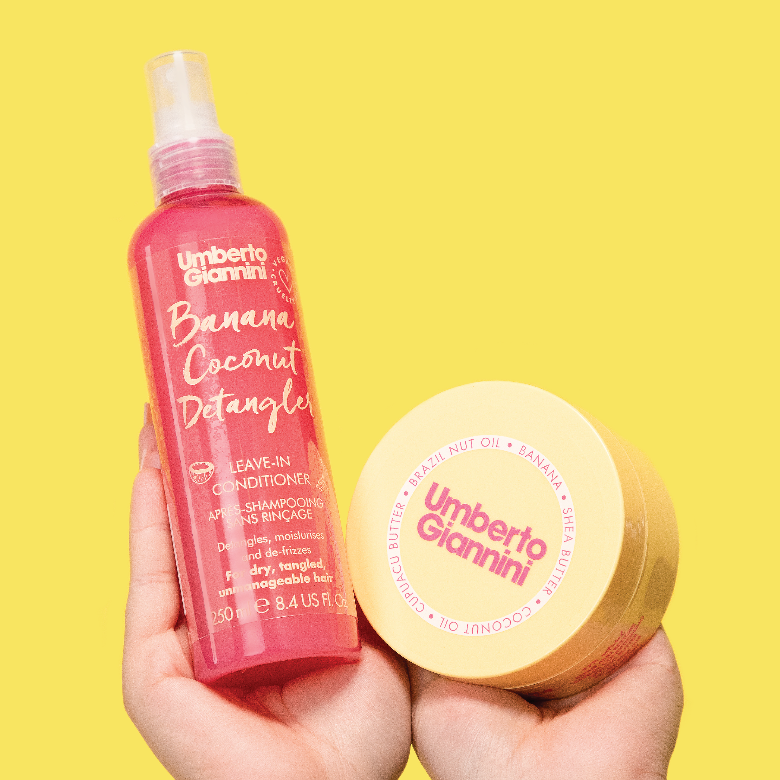 Umberto Giannini Banana Butter Leave-In Conditioner er en fuktighetsgivende leave-in balsam som bidrar til å gjenopprette spenst og glans til tørt og teksturert hår.