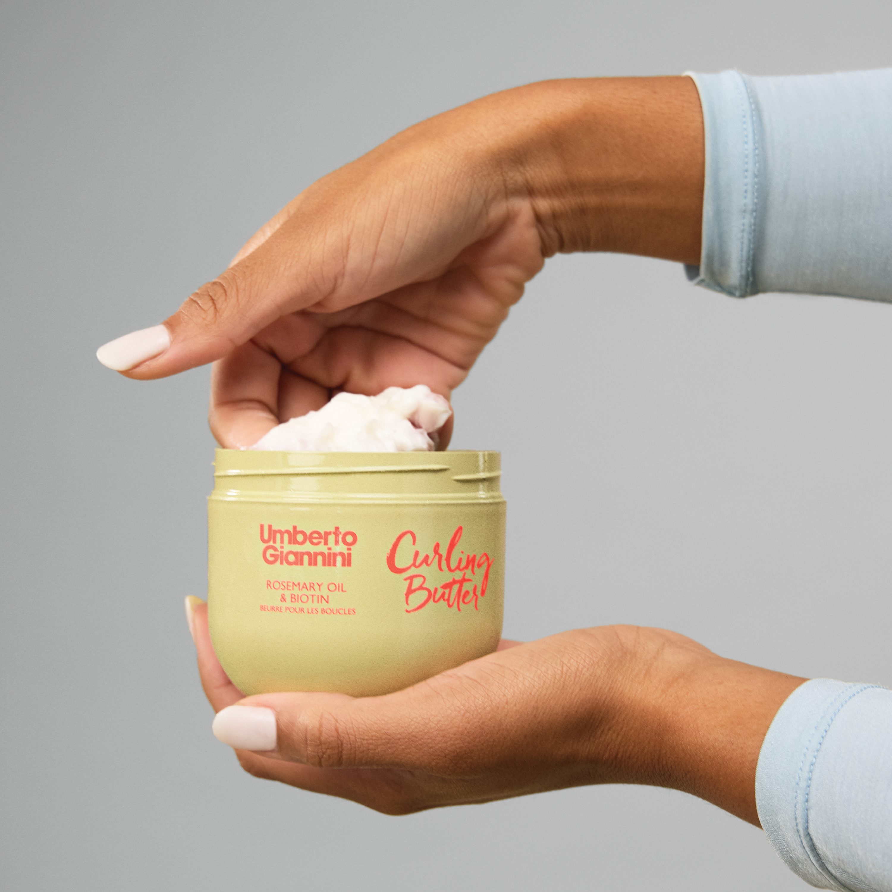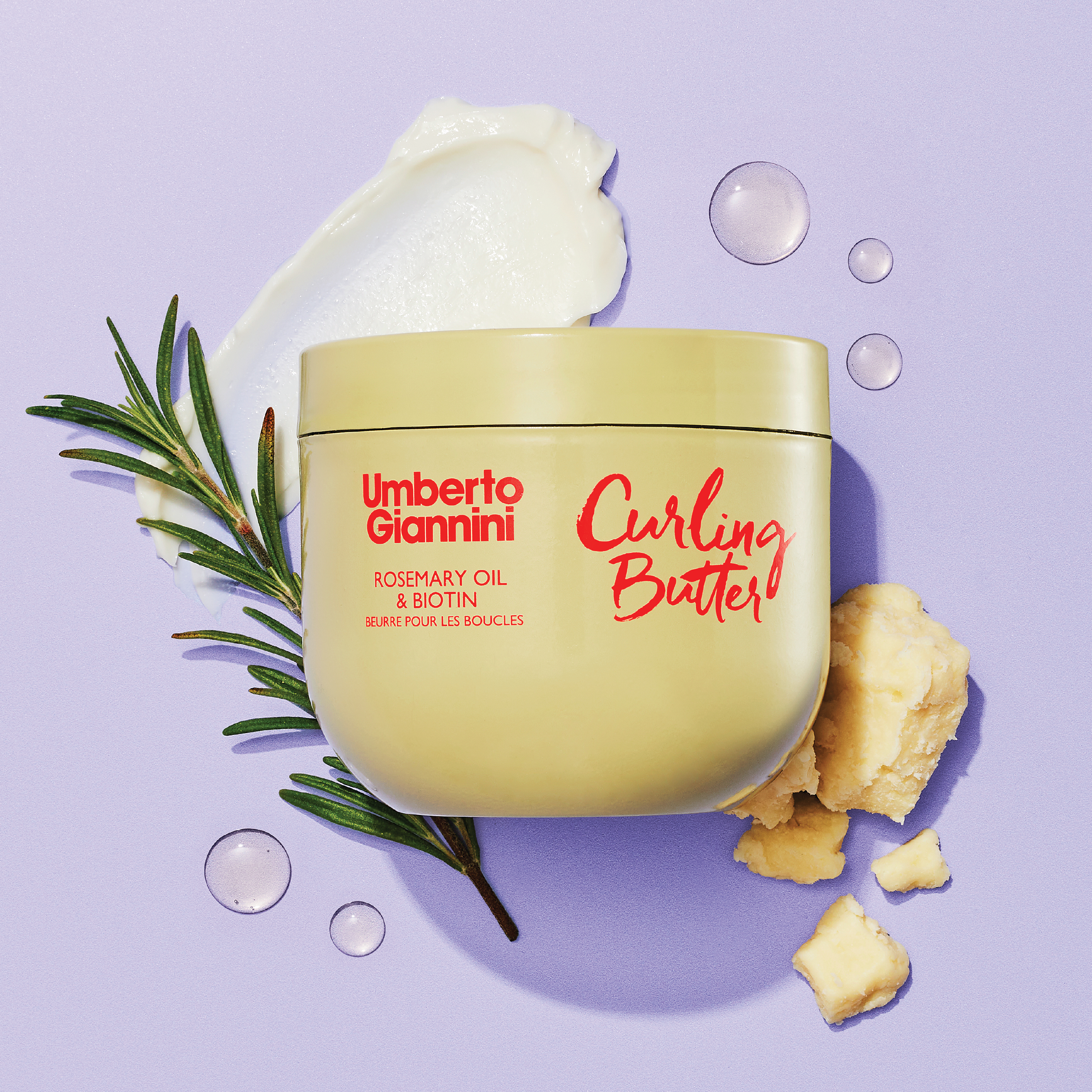 Umberto Giannini Strong Curls Curling Butter er formulert for å fremheve og forsterke hårets naturlige krøller. Stylingkremen inneholder biotin, rosmarinolje og castorolje som bidrar til å styrke hårrøttene og beskytte håret mot knekte hårstrå. I tillegg er den beriket med sheasmør, hveteprotein og kokosolje som tilfører rikelig med fukt og bidrar til å styrke hver enkelt krøll. Hårkremen gir medium hold og etterlater håret mykt og håndterlig. Stylingkremen har en mild og aromatisk duft med friske toner av sitron og rosmarin, balansert med lavendel og eukalyptus.