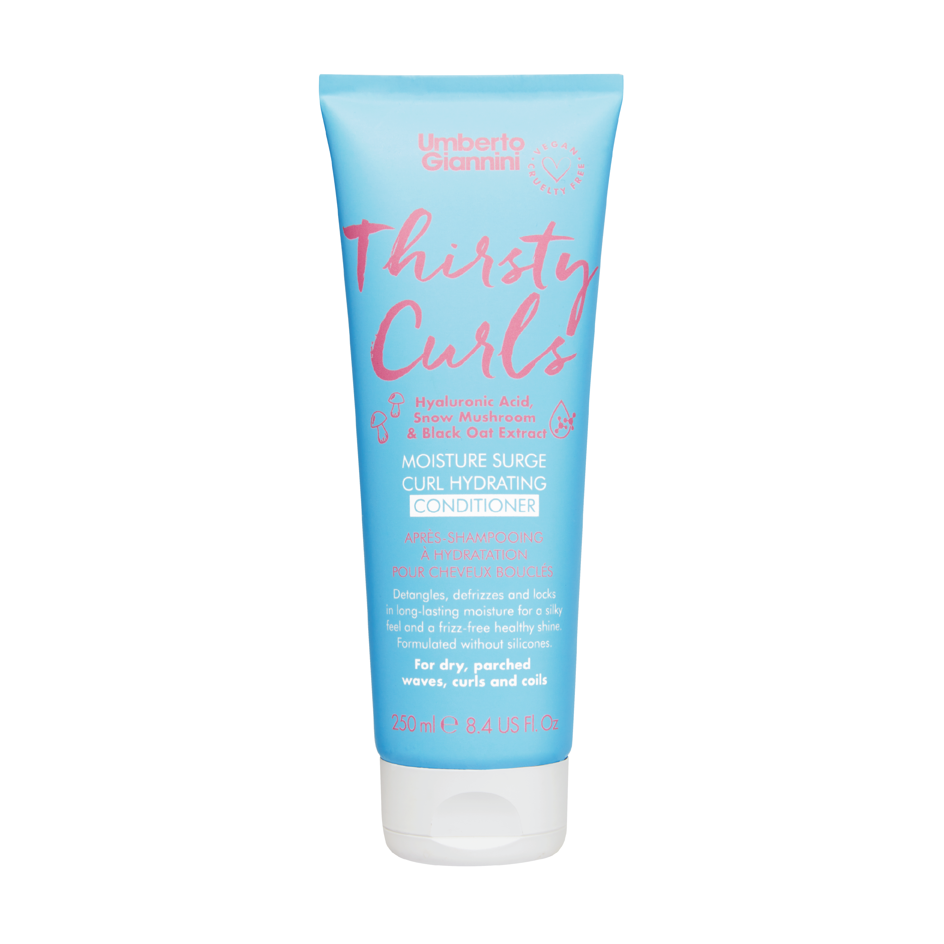 Umberto Giannini Thirsty Curls Conditioner er en fuktighetsgivende balsam som pleier og gjenoppretter uttørrede krøller og bølget hår.