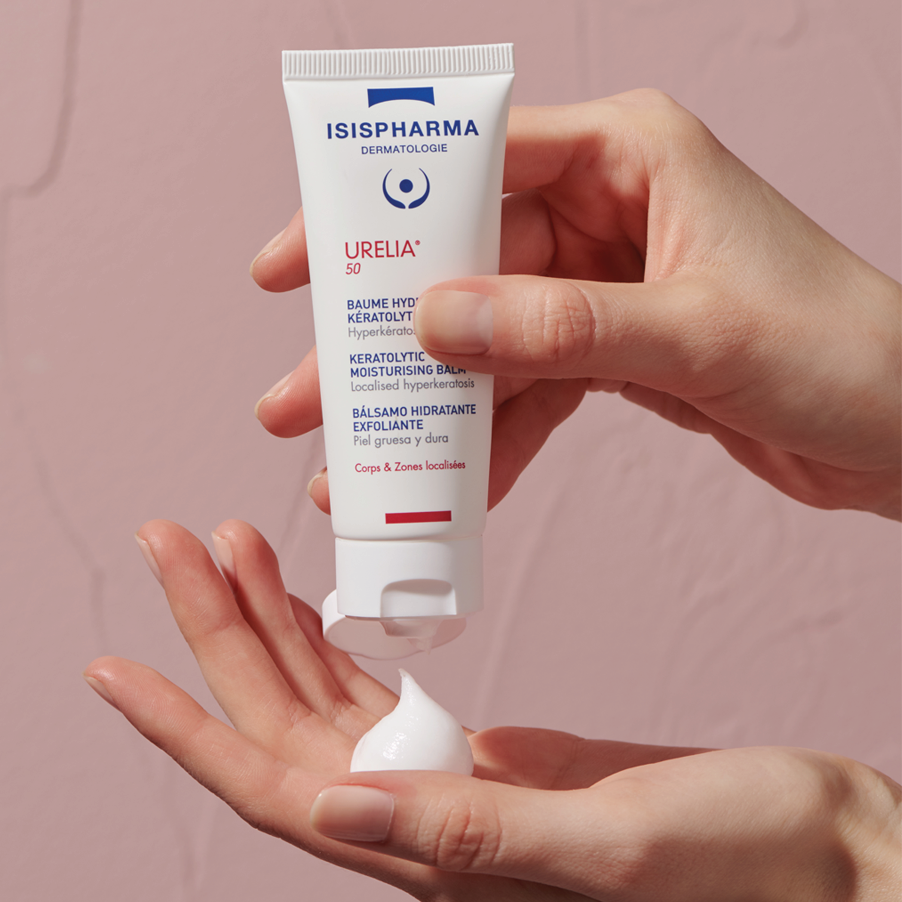 Isispharma Urelia 50 er en mykgjørende og eksfolierende krem til kropp som fukter huden og inneholder 50 % karbamid.