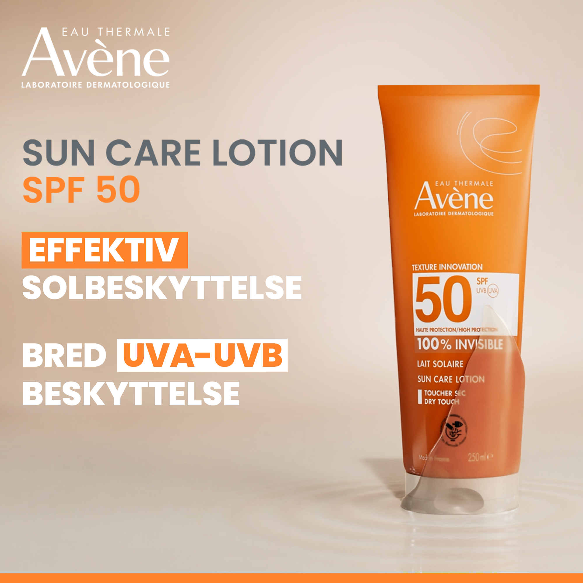 Avène Sun Lotion SPF50 er en lett og behagelig solkrem som gir høy solbeskyttelse til både ansikt og kropp.