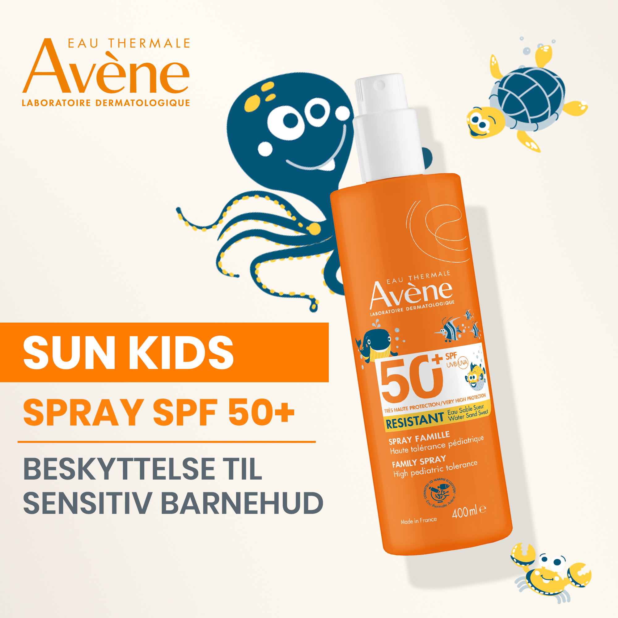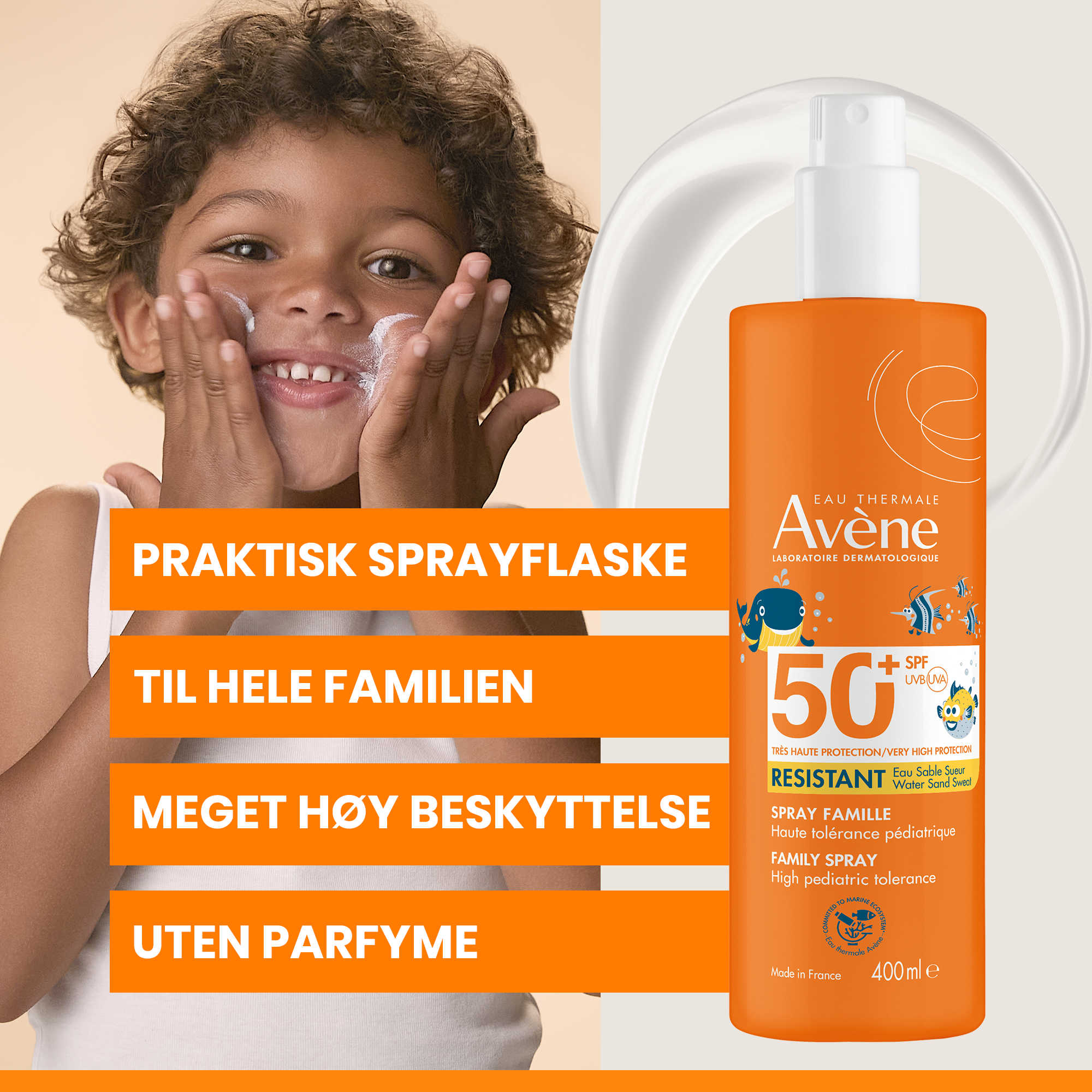 Til barn med sensitiv hud. Vannresistent. Uten parfyme.