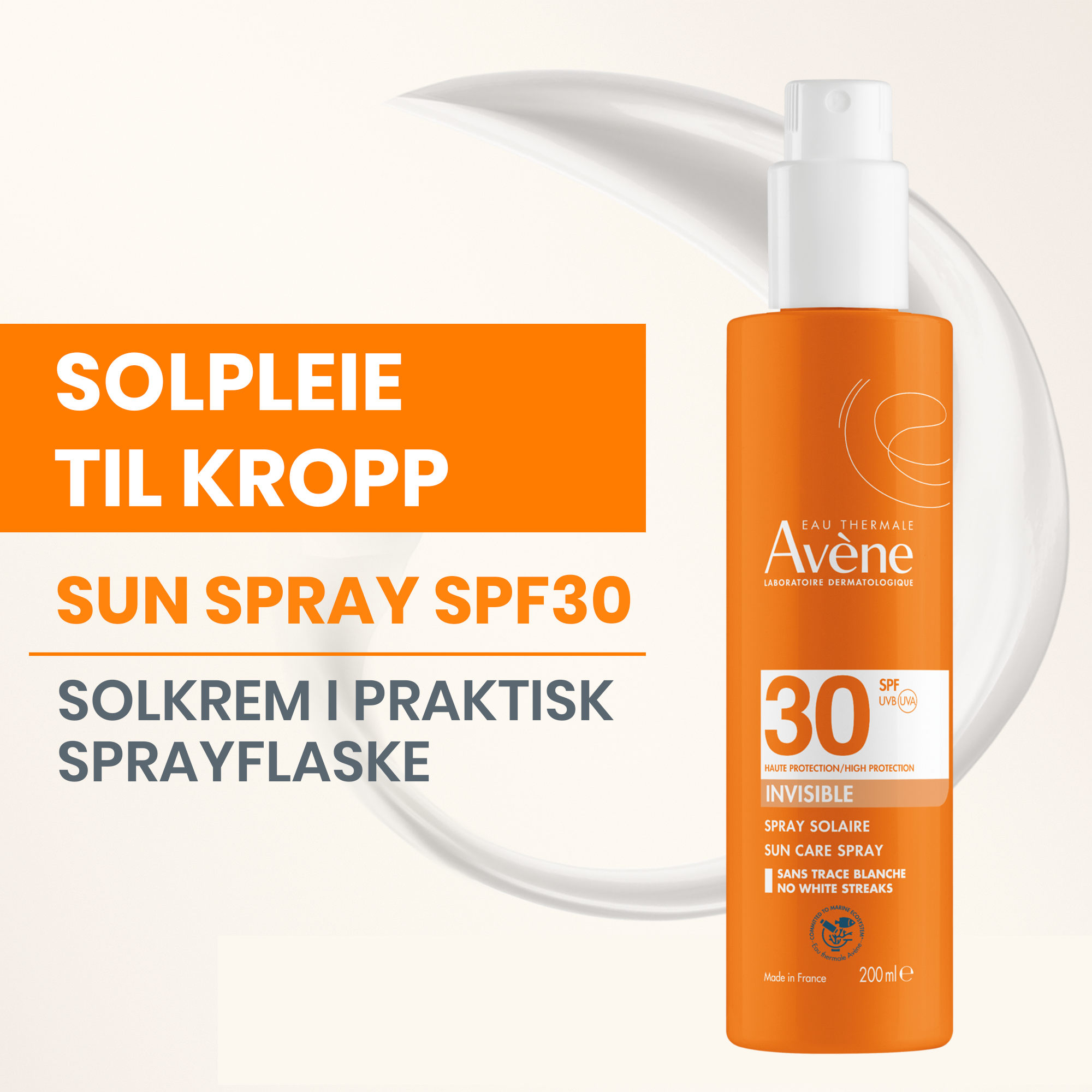 Avène Sun Spray SPF30 er en solspray til kropp og ansikt med solfaktor 30.