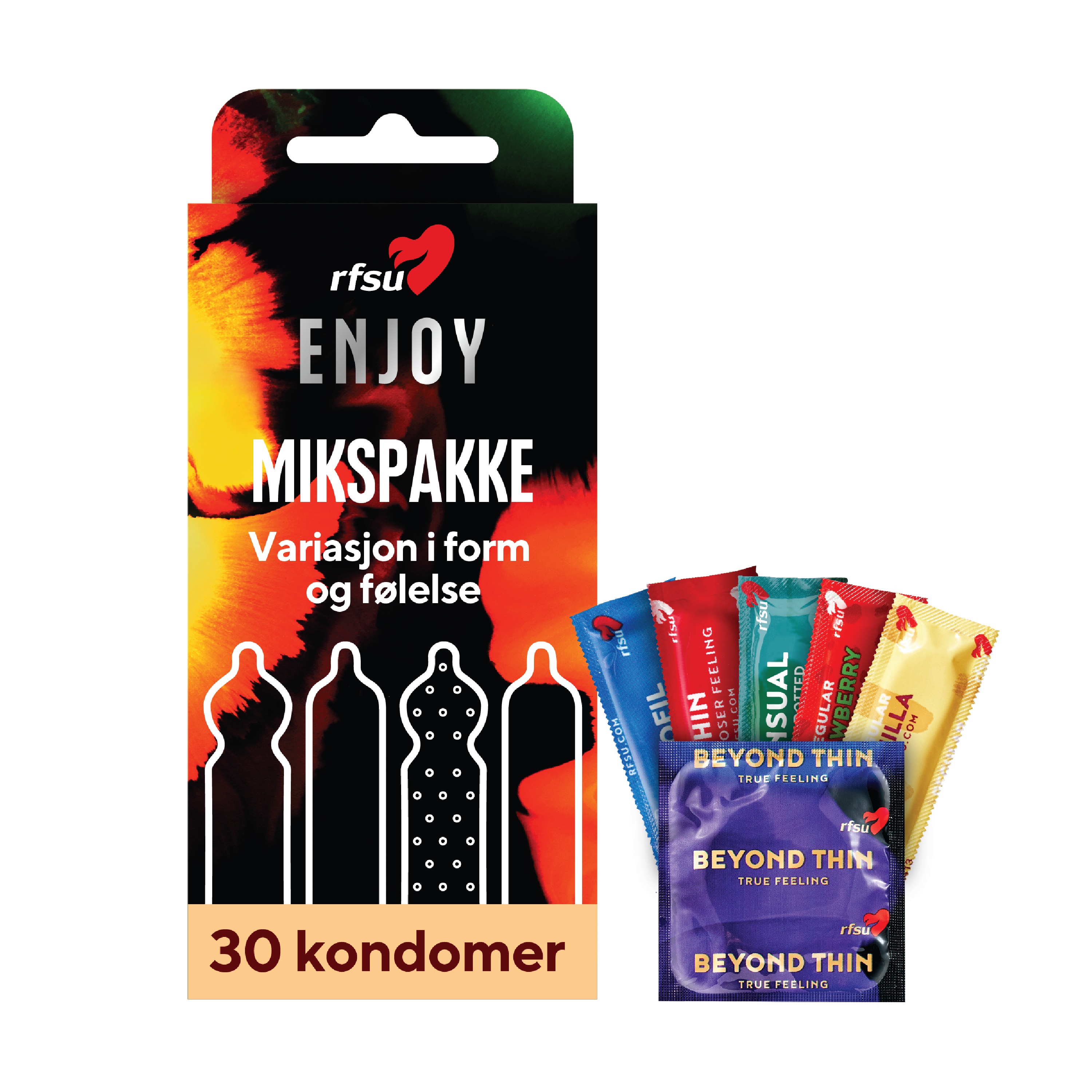 Rfsu Kondom Enjoy er en blanding av bestselgende kondomer fra Rfsu, for deg som ønsker variasjon.