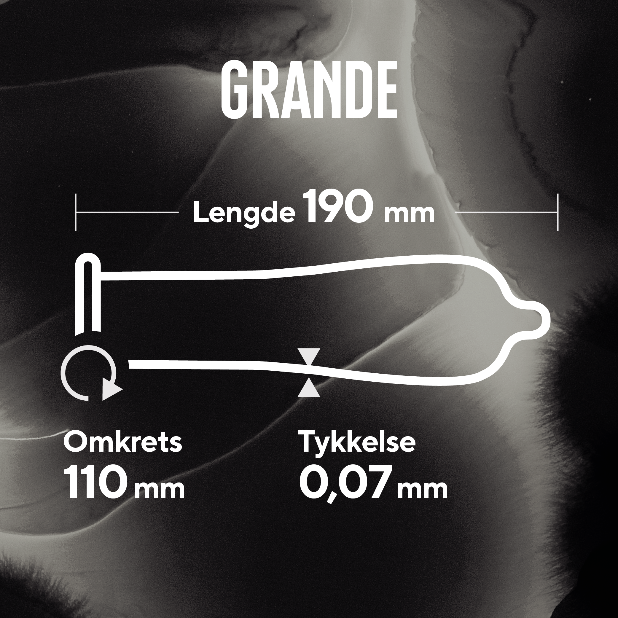 Rfsu Kondom Grande passer for deg som synes standardkondomer er for trange. Kondomet har en utsvingt topp for best følelse. Kondomet har en lomme på tuppen, er ufarget og glatt med ekstra glidemiddel (silikon).