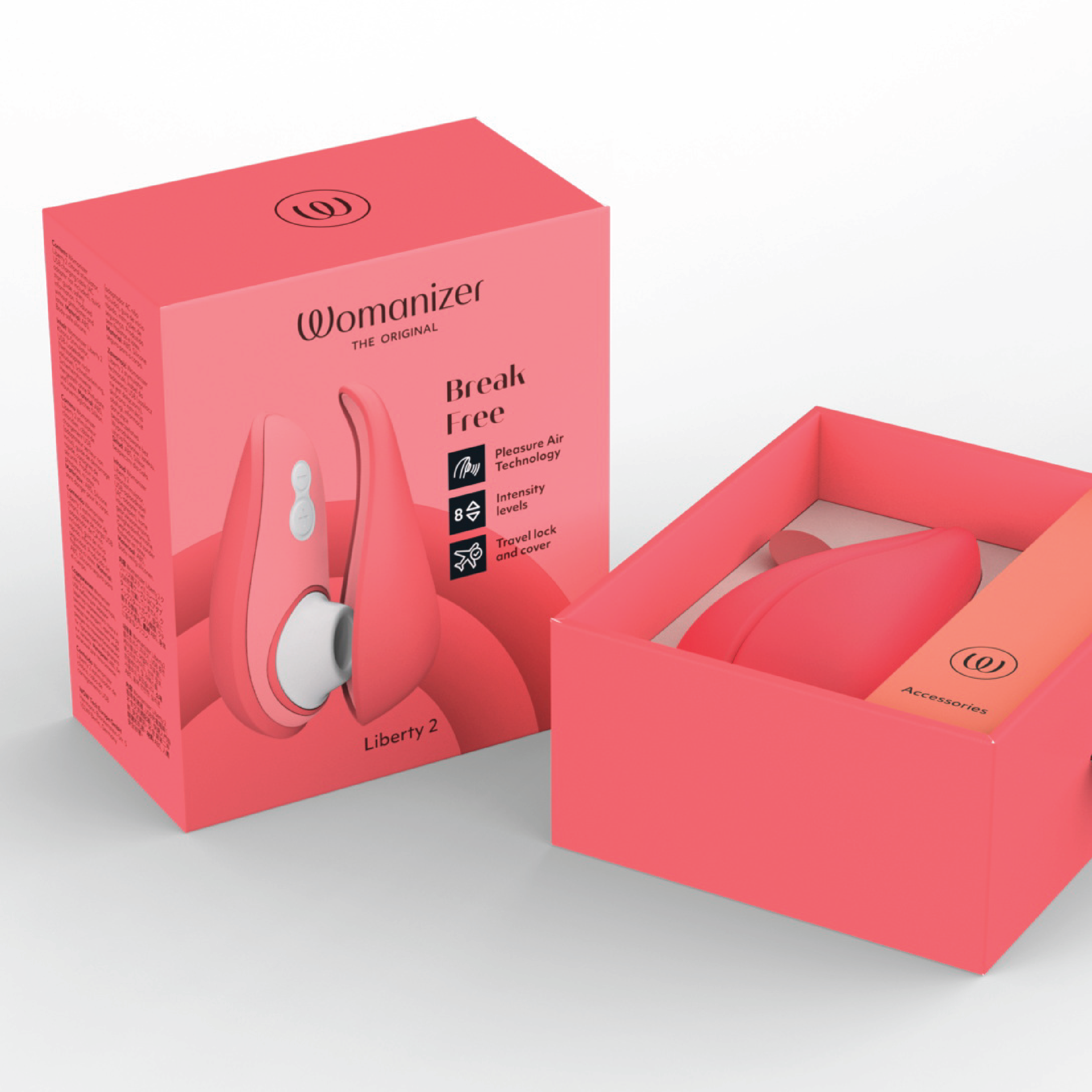Womanizer Liberty 2 benytter den velkjente Pleasure Air Technology som stimulerer klitoris med milde luftbølger uten direkte berøring. Stimulatoren omslutter klitoris og gir presis stimulering uten følelsen av overstimulering. Den er kompakt og i reisestørrelse, og leveres med et diskret og hygienisk magnetdeksel som gjør den trygg å transportere og oppbevare. Produktet har automatisk avstenging og er vanntett, slik at den også kan brukes i dusj og badekar. Liberty 2 er oppladbar og leveres med USB-ladekabel.