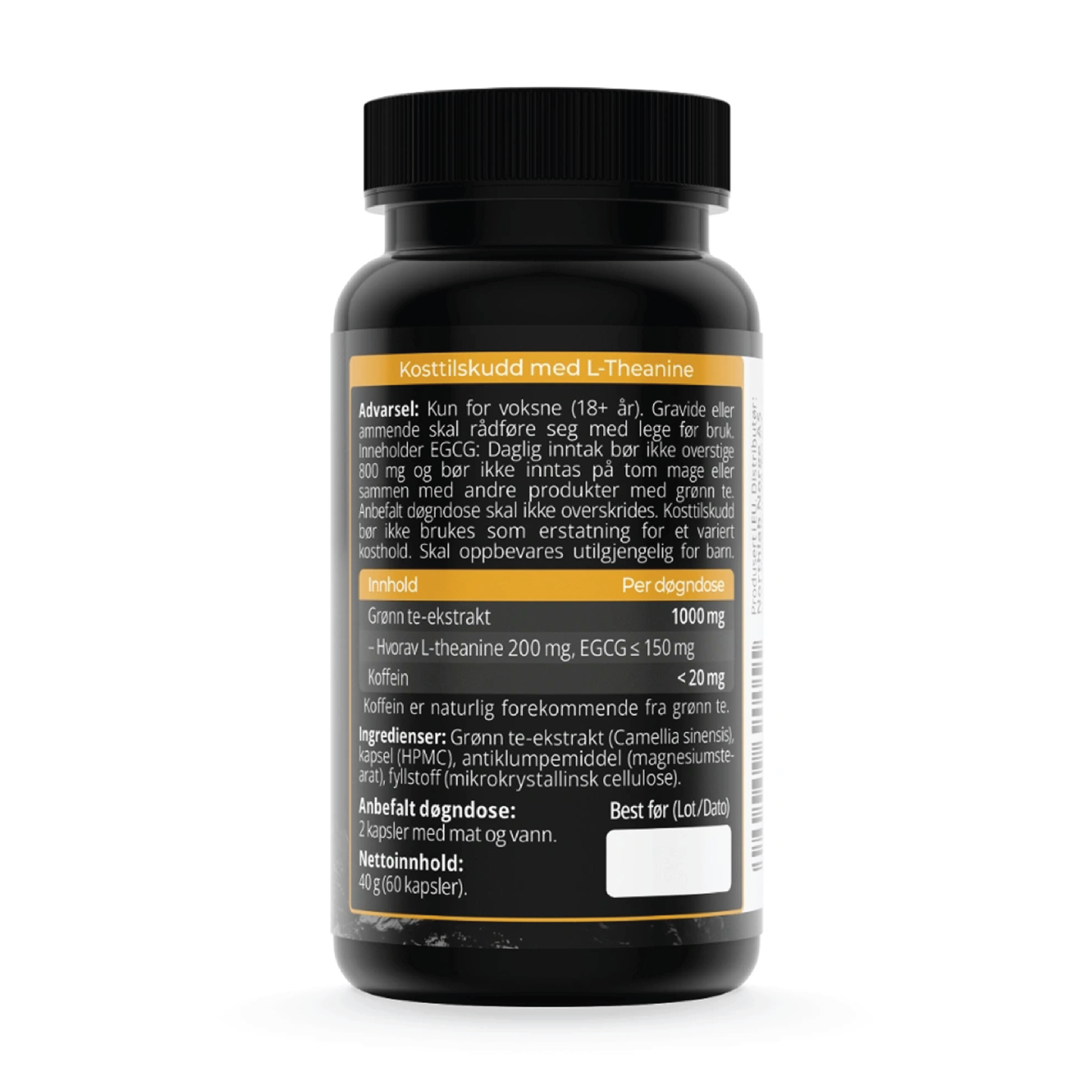 Northlab L-Theanine kapsler inneholder aminosyren L-Theanine som finnes naturlig i grønn te (Camellia sinensis). Hver dose gir ren L-Theanine med et naturlig lavt innhold av koffein.