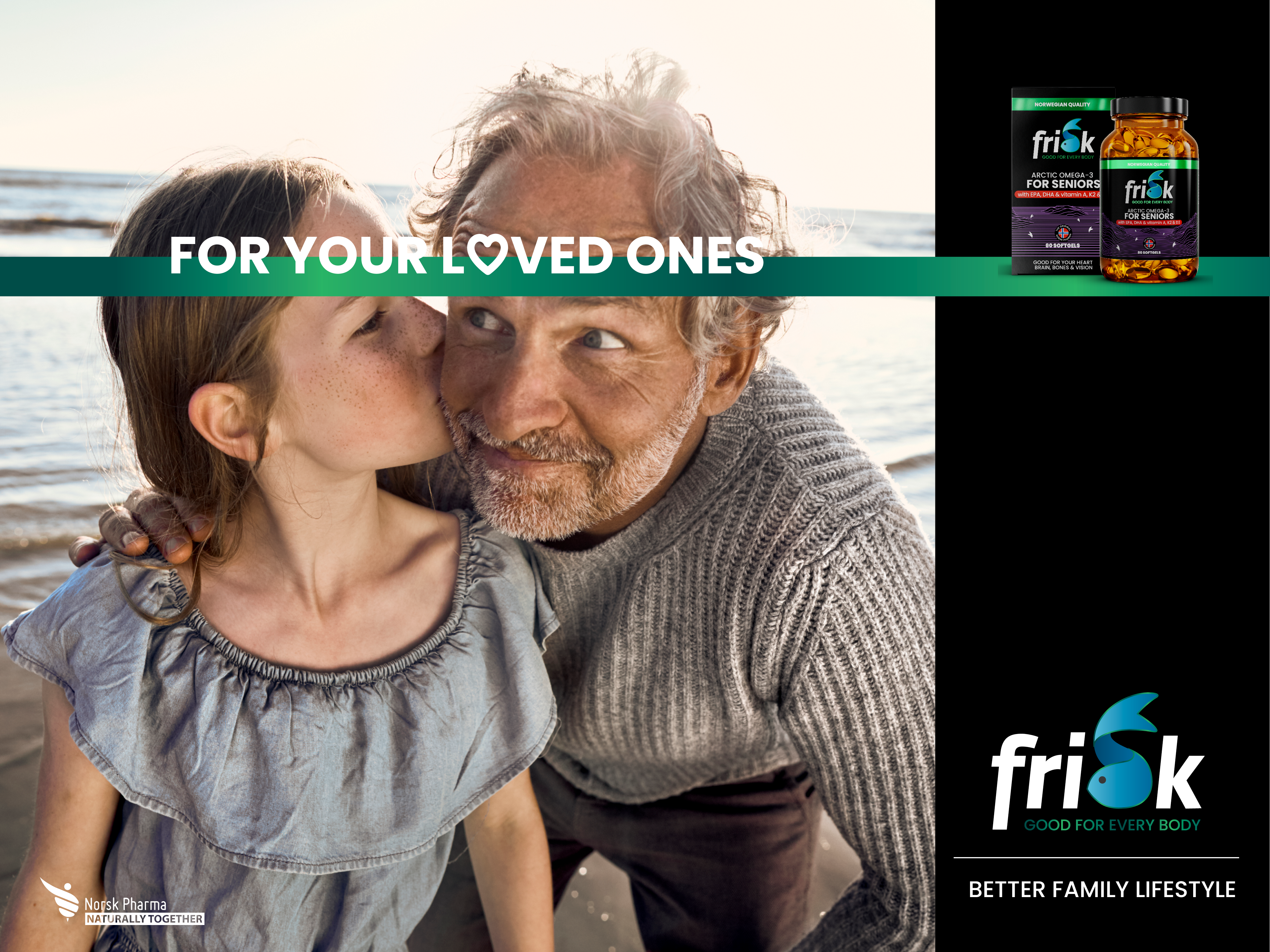 Frisk Arctic Omega-3 Senior er et omega-3-tilskudd som inneholder vitamin A, K2 og D3, og er spesielt utviklet for eldre.