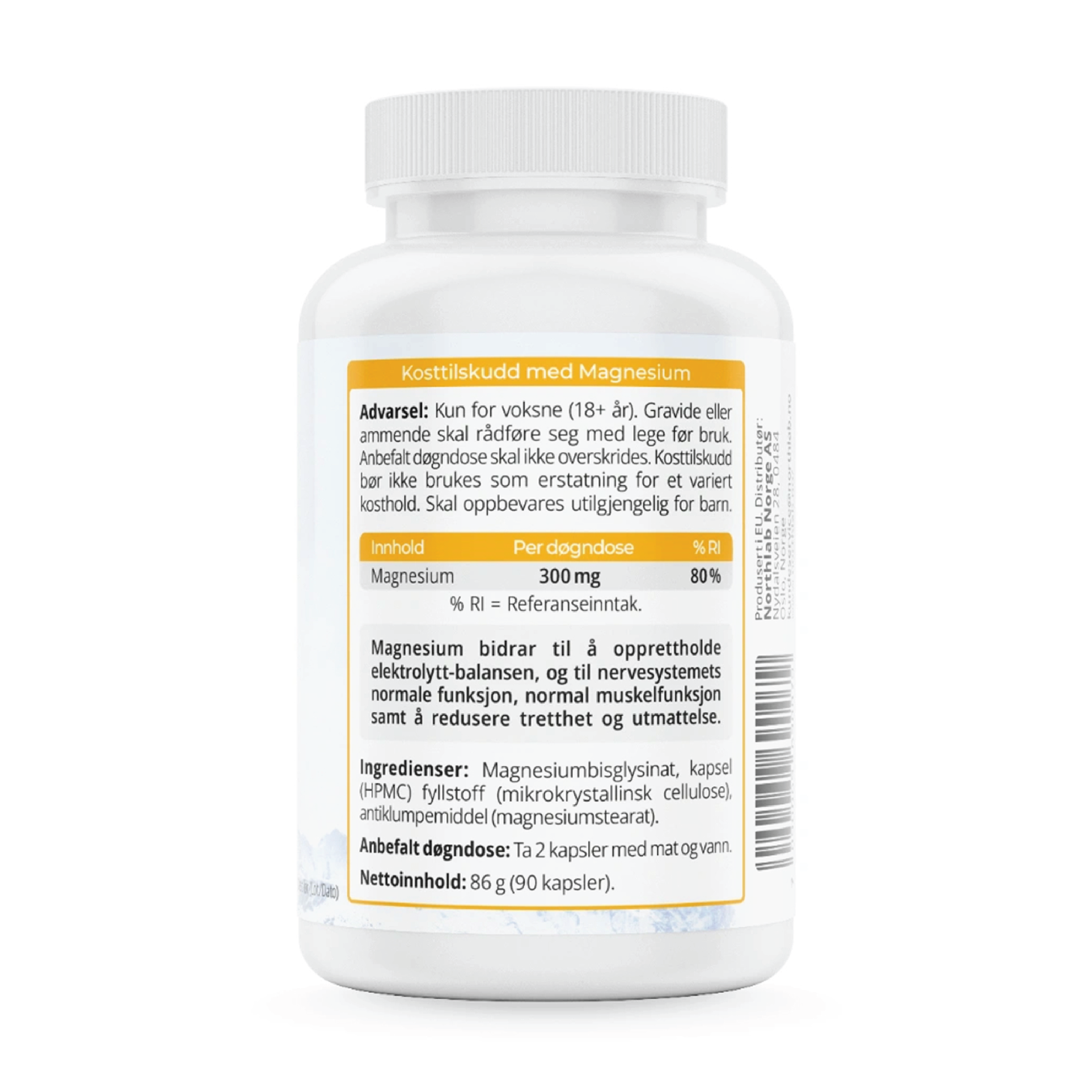 Northlab Chelatert Magnesium kapsler er et kosttilskudd med magnesium, til voksne over 18 år.