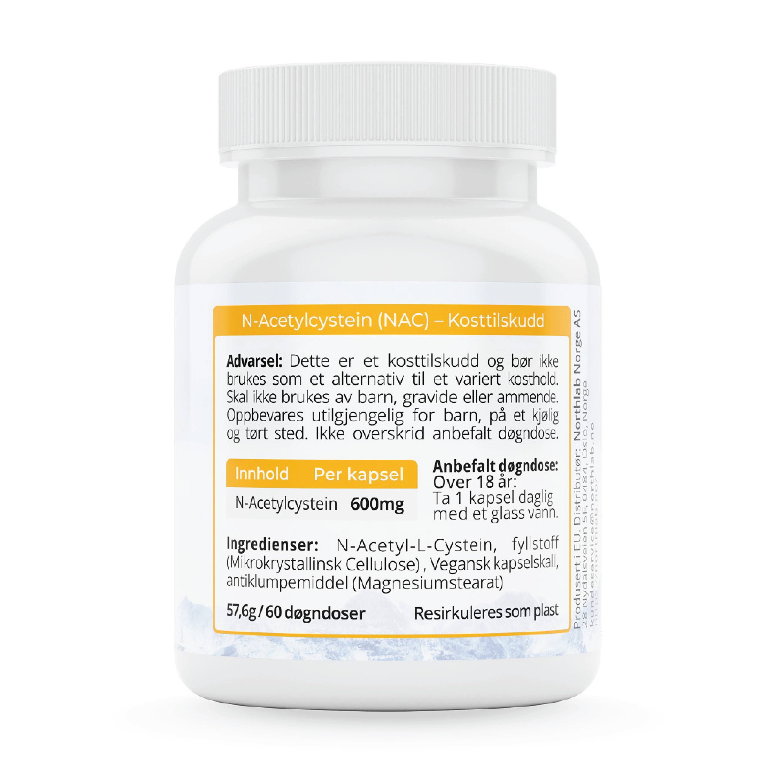Northlab NAC kapsler er et kosttilskudd med N-Acetylcystein, til voksne over 18 år.