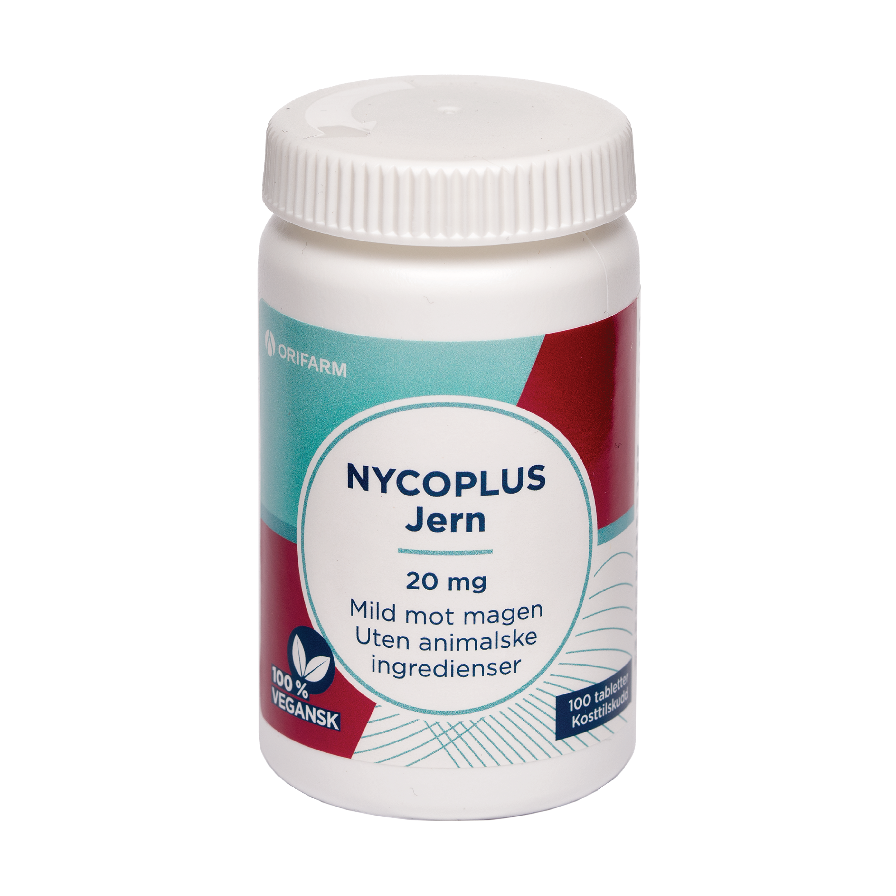 Nycoplus Jern 20 mg tabletter er et kosttilskudd med jern, til voksne over 18 år.