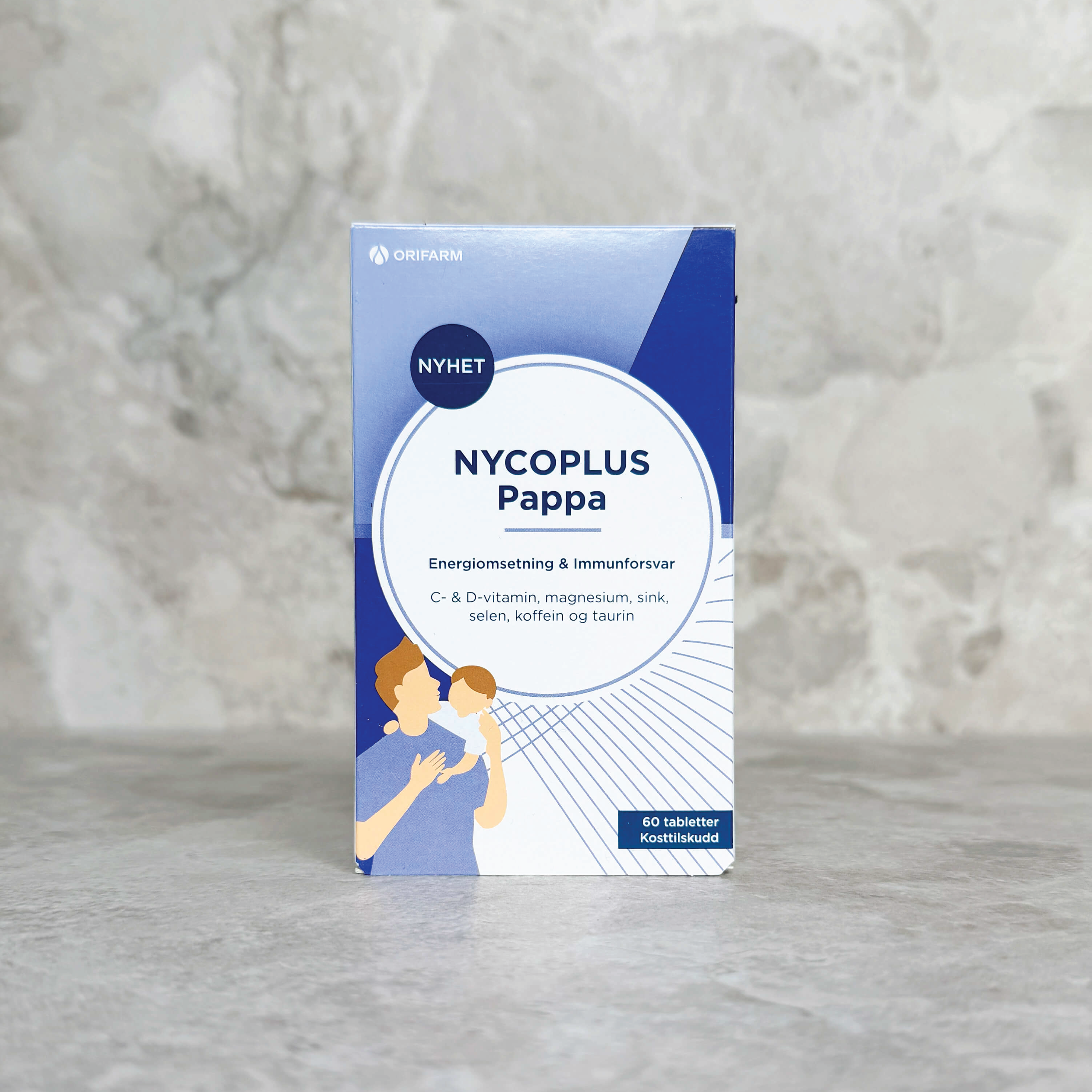 Nycoplus Pappa er et kosttilskudd med fokus på energi og immunforsvar, til voksne over 18 år.
