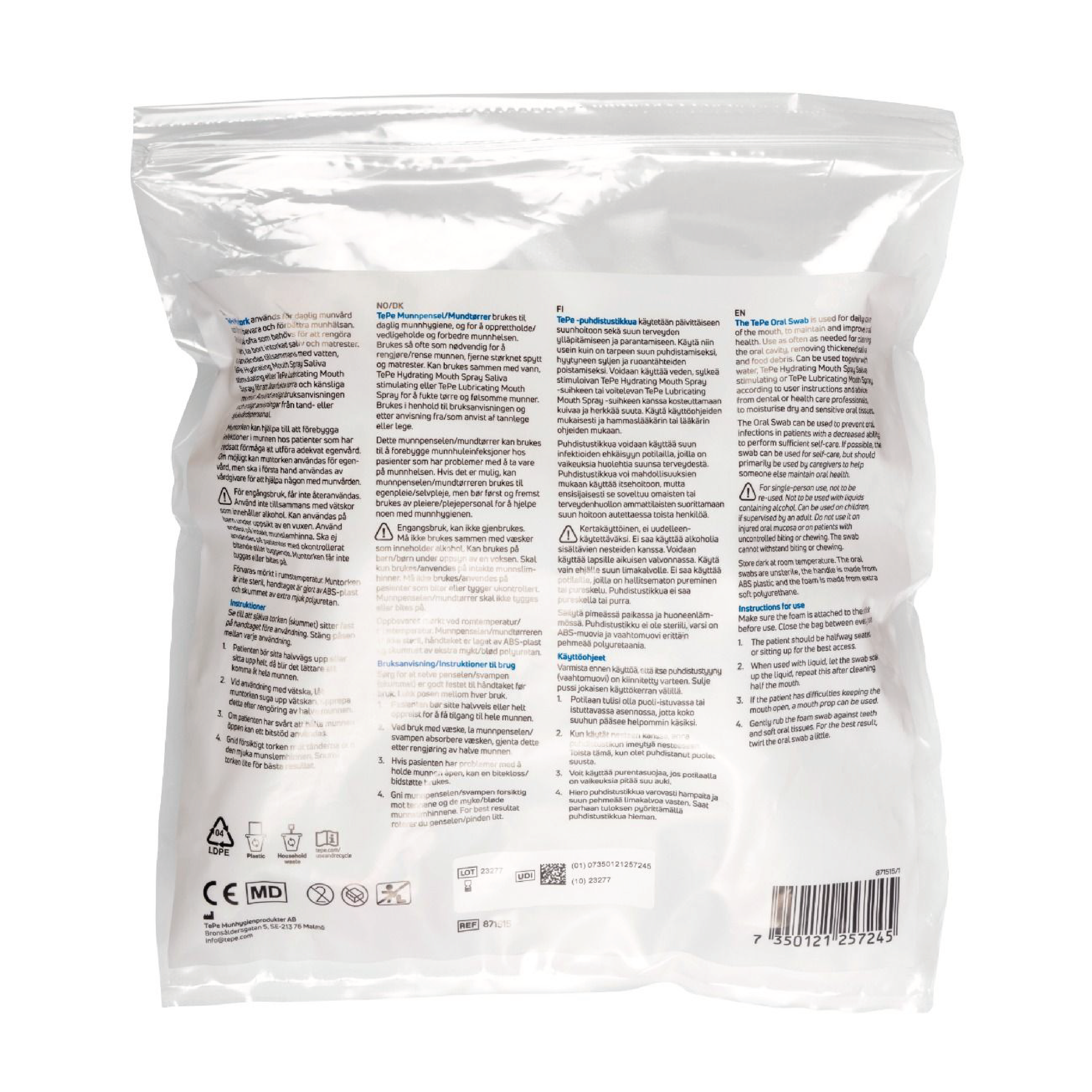 TePe Extra Myk Munnpensel er et godt hjelpemiddel for daglig munnpleie, og for å bevare og forbedre munnhygienen. TePe Munnpensel kan brukes for rengjøring av munnen, fjerne størknet spytt og matrester. Munnpenselen kan brukes sammen med vann, TePe Hydrating Mouth Spray Saliva eller TePe Lubricating Mouth Spray, for å fukte tørre og følsomme munnslimhinner.