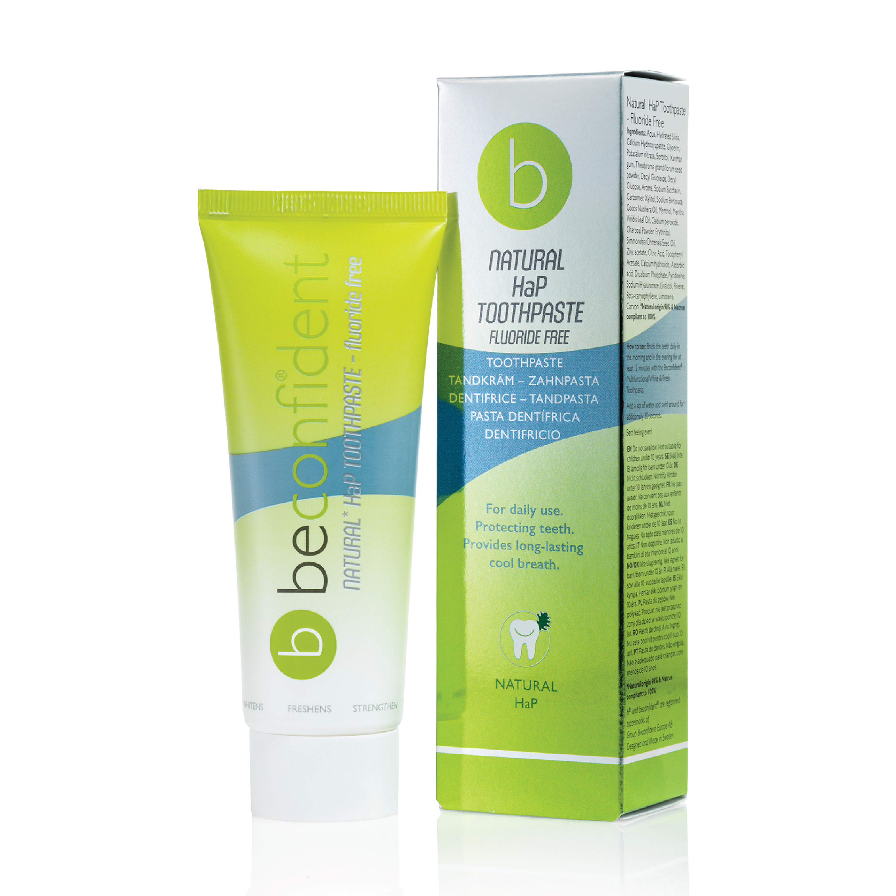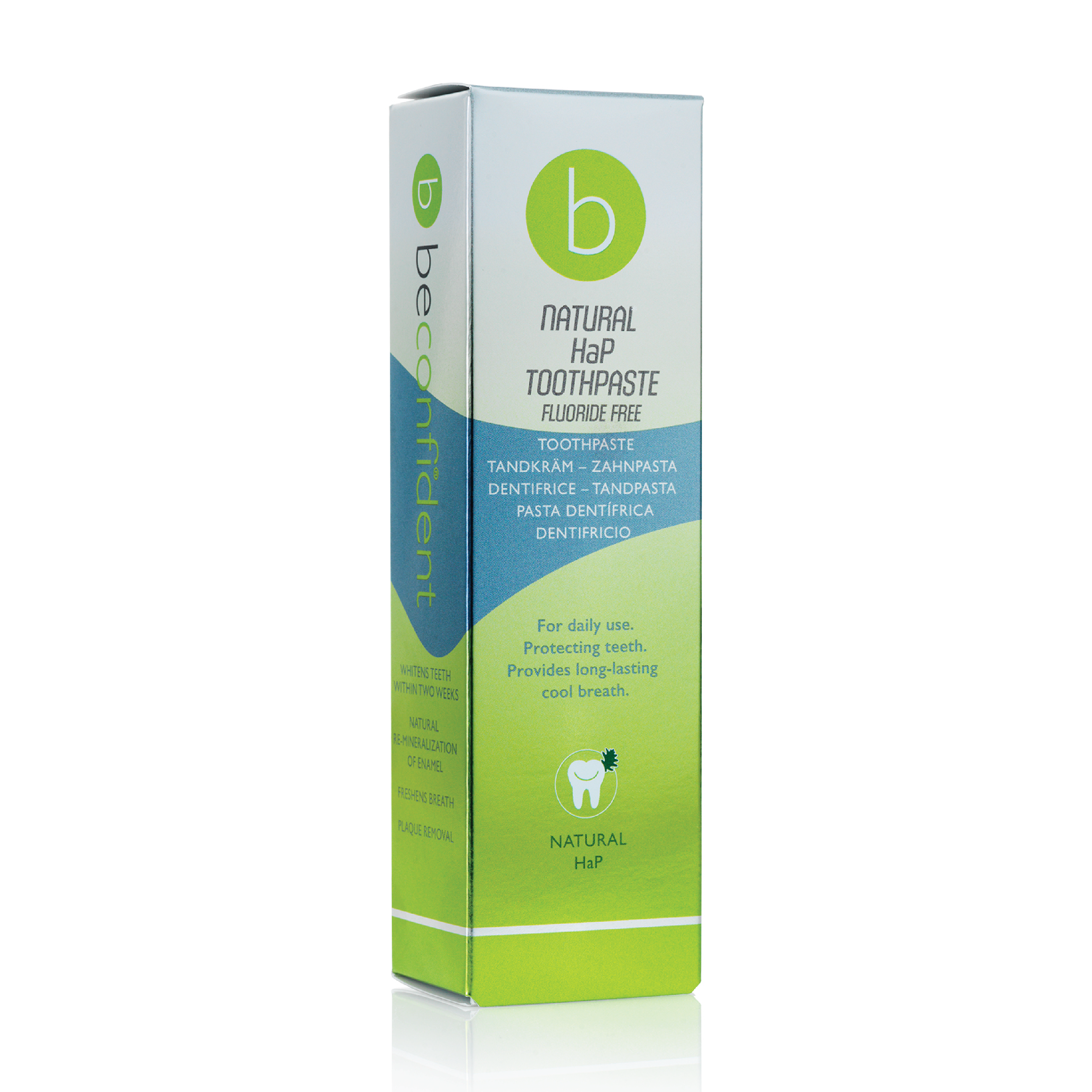 Beconfident Natural HaP-tannkrem er formulert med hydroksyapatitt, en naturlig komponent i tennene, som bidrar til å remineralisere emaljen og forsegle mikrosprekker. Tannkremen inneholder xylitol som legger seg som et beskyttende lag på tennene og bidrar til å motvirke plakkoppbygging, samt kokosolje som inngår i en metode for å bidra til å holde tennene rene. Antioksidanter som cupuaçu, vitamin C, vitamin E og hyaluronsyre bidrar til å støtte munnhelsen, mens hvitt kull renser emaljen skånsomt.