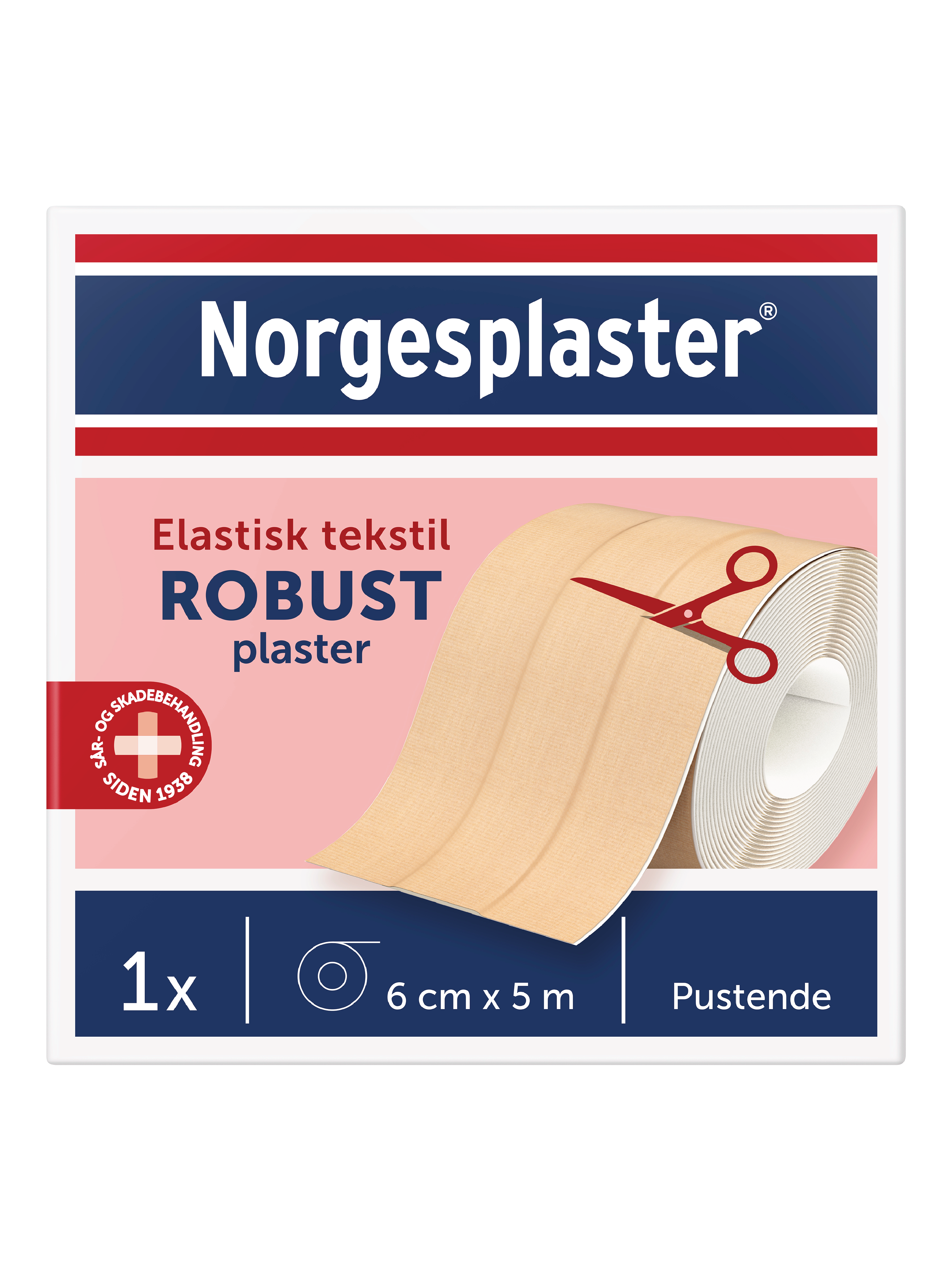 Norgesplaster Robust Plasterrull er et slitesterkt tekstilplaster beregnet til små sår, kutt og rifter. Laget av elastisk tekstil med et hudvennlig lim med klebekraft. Tåler tøff bruk. Plasteret har en sentralt plassert sårpute som ikke fester seg til såret. Sitter best på tørr og ren hud.