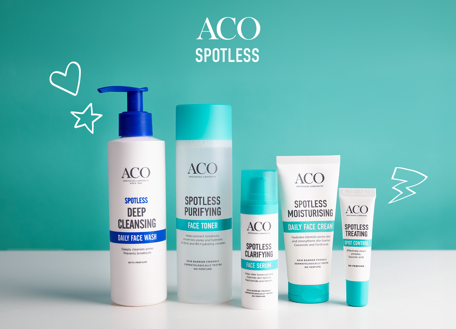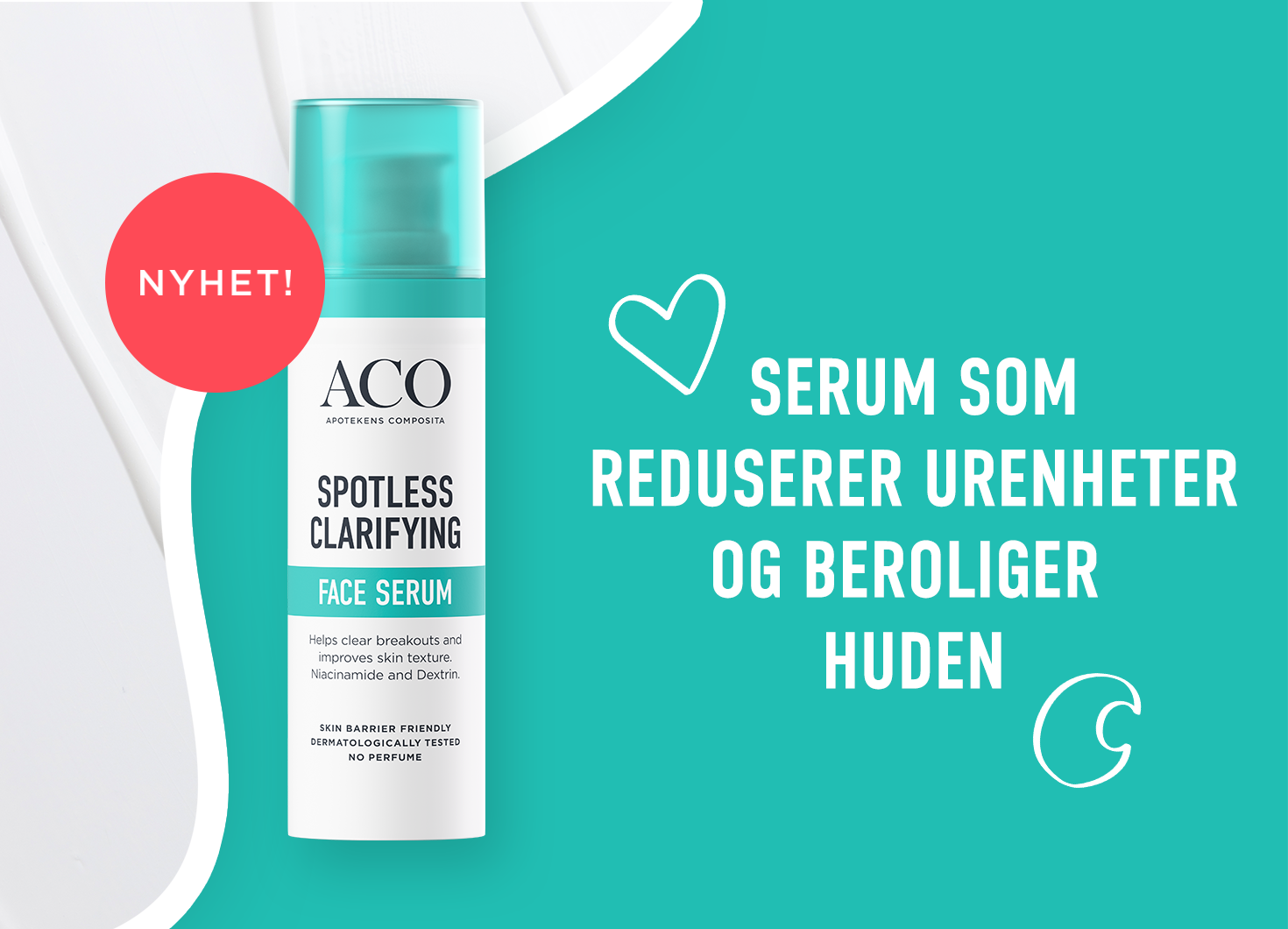 - Booste: Tilfør et målrettet serum etter rens og toner for ekstra effekt. ACO Spotless Face Serum er et hurtigabsorberende serum med niacinamid som reduserer urenheter og beroliger huden. Minimerer irritasjon og rødhet. Påføres morgen og kveld.