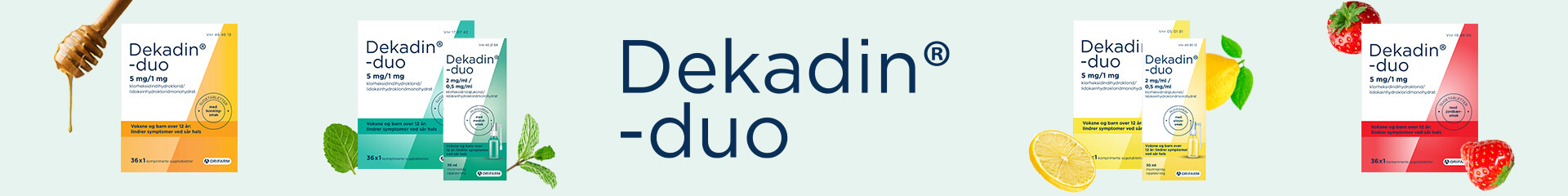 Dekadin-duo er reseptfrie sugetabletter og munnspray med lokal virkning i munn og svelg.