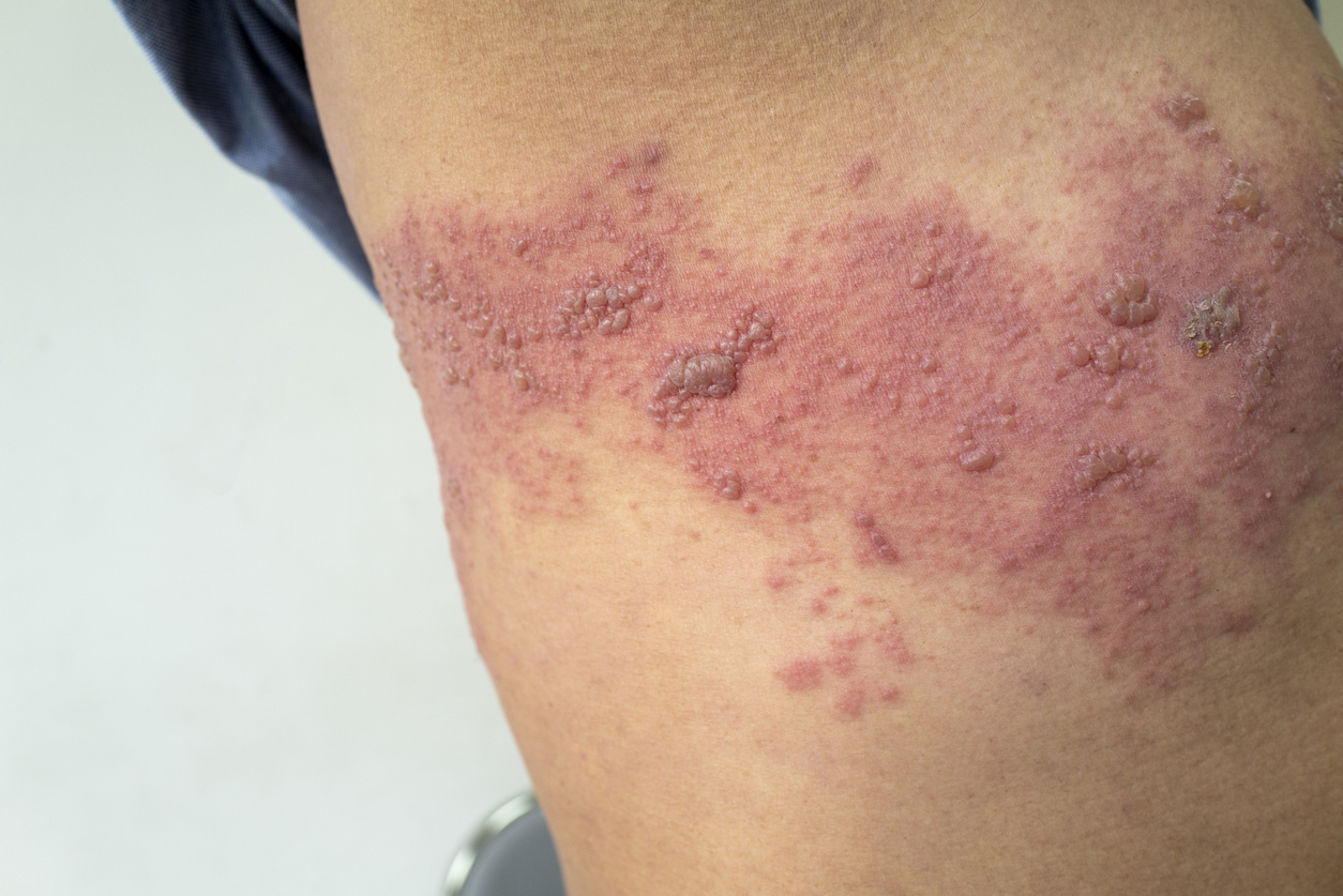 Det er fokus på smertelindring og hygiene. Hold utslettet tørt og rent for å unngå infeksjon, bruk løstsittende klær (gjerne bomull, ull, silke eller andre naturmaterialer), og ta reseptfrie smertestillende (paracetamol) med anbefalt dosering.